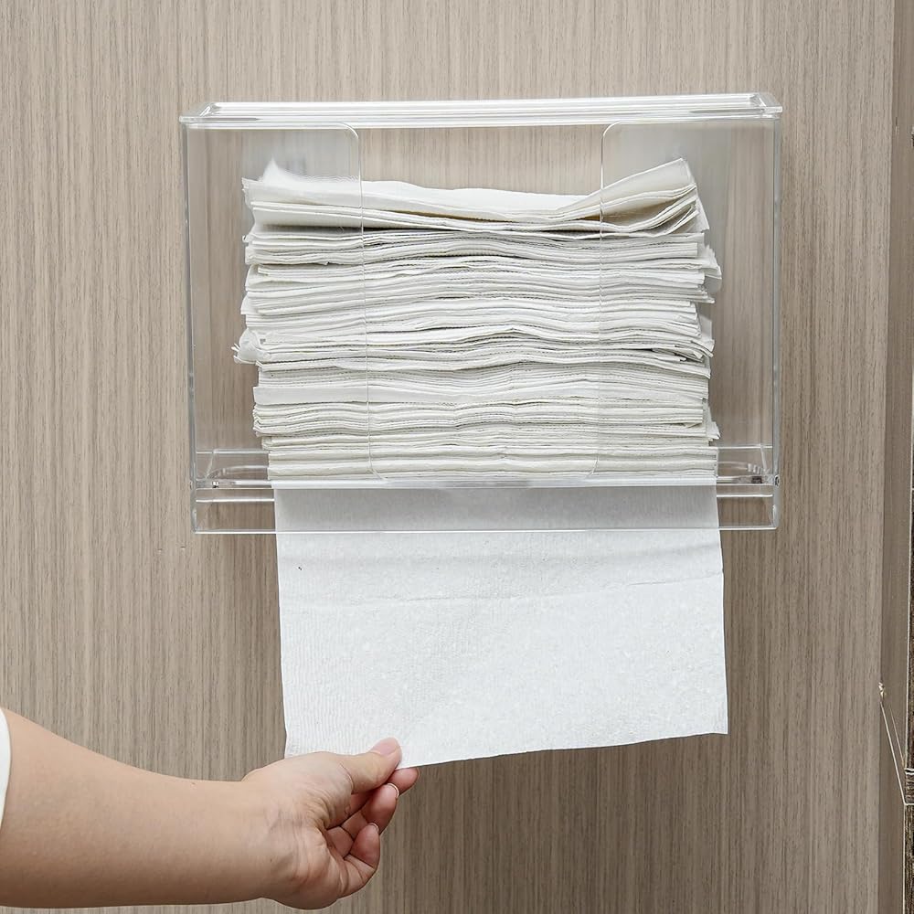 يُعد حامل المناشف الورقية المثبت على الحائط مثاليًا لتخزين منشفة اليد المطوية على شكل حرف C، والطية على شكل حرف Z، ومنشفة اليد ثلاثية الطي، والمناشف الورقية، والمناديل. هناك طريقتان لاستخدام صندوق المناديل الخاص بنا، يمكنك انتزاع منشفة ورقية من الأسفل عند تعليقها واحدة على الحائط، عندما تضع صندوق المناديل على المنضدة، يمكنك استخراج المناديل من الأعلى.