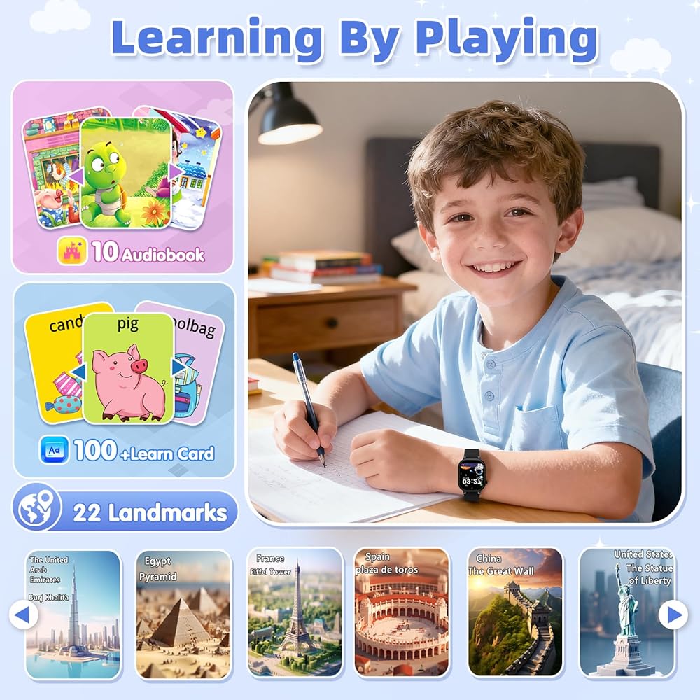 【لعبة تعليمية للأطفال】تتميز الساعة الجديدة للأطفال بتتبع العادات (13 منبه)، مما يساعد الأطفال على بناء مهارات إدارة الوقت. تشتمل ساعات الأطفال هذه أيضًا على 10 كتب صوتية ومعرفة تاريخية وبطاقة تعليمية لا تمتلكها الساعات التقليدية. تساعد ساعة الأطفال الذكية الأطفال على حب القراءة والكلمات من خلال أنشطة ممتعة وجذابة. لعبة مثالية للأطفال من سن 4 5 6 7 8 9