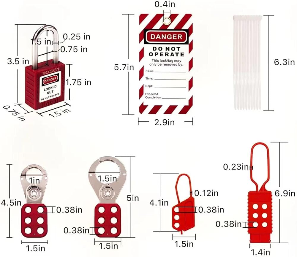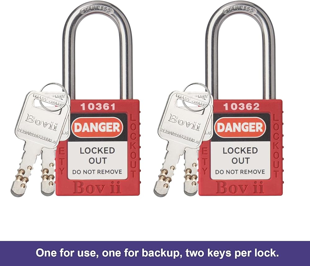 3. LOTO Padlocks: Our lockout kit contains 3 keyed different padlocks for reliable lockout safety, the key is one use one spare.