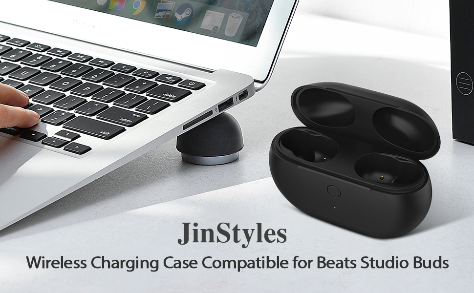 حافظة شحن بديلة من Jinstyles متوافقة مع Studio Buds & Studio Buds+: حافظة شاحن مع زر إقران بلوتوث، بطارية 660 مللي أمبير في الساعة، غير متضمنة سماعات الأذن
