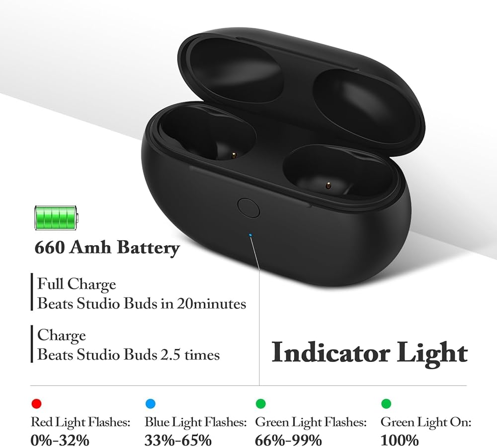• الشحن السريع: تقوم هذه العلبة البديلة بشحن سماعات Studio Buds الخاصة بك بالكامل خلال 30 دقيقة. مع بطارية مدمجة بقوة 660 مللي أمبير في الساعة، تدعم ما يصل إلى 2.5 عملية شحن كاملة، حتى تتمكن من الشحن أثناء التنقل دون قلق