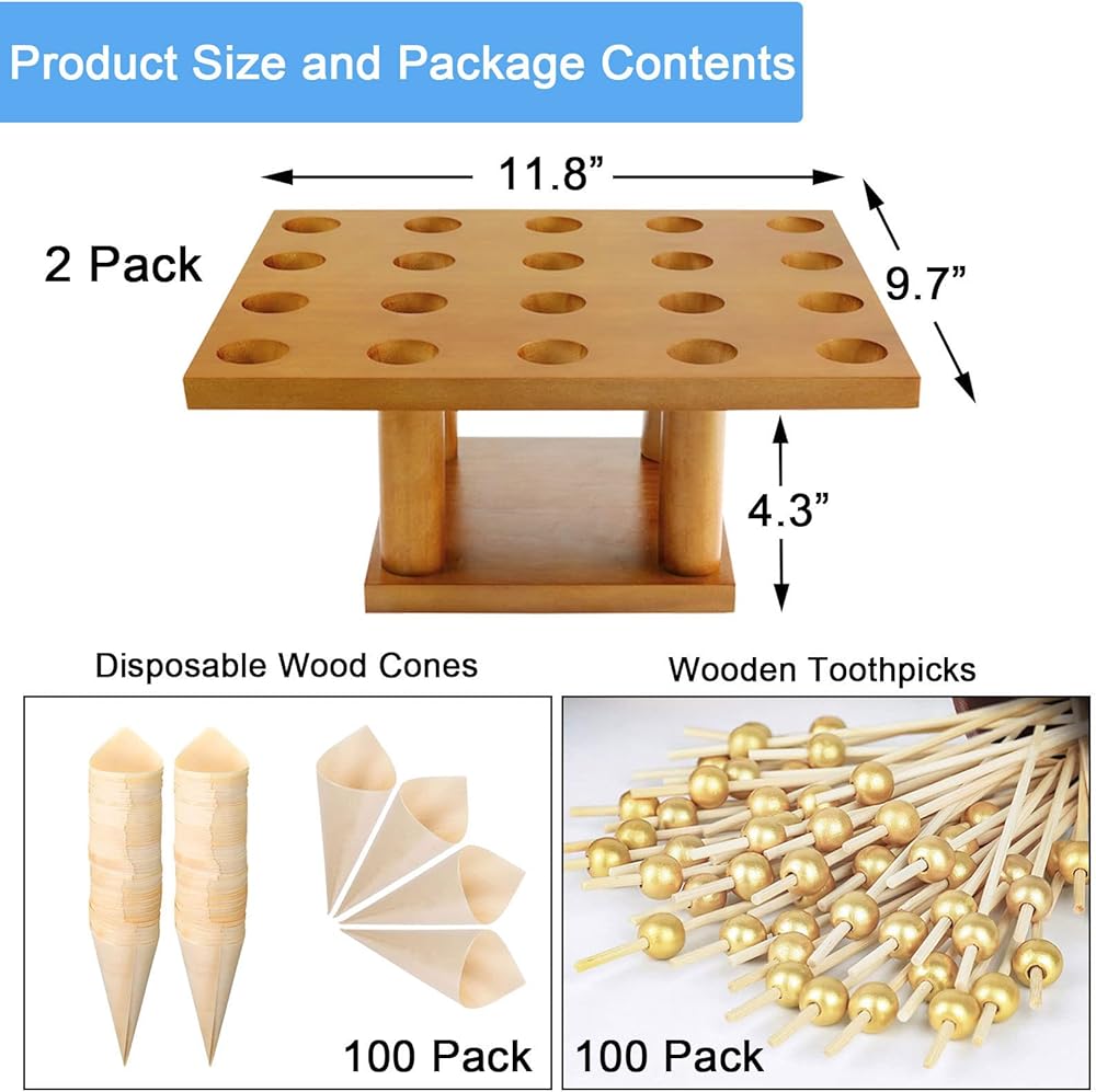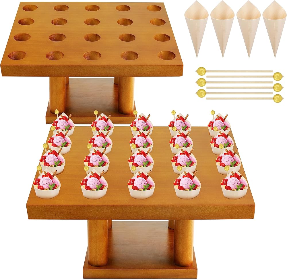 حامل مخروطي خشبي بسعة 40 فتحة من بي سي سي اي زد يو، حامل مخاريط الطعام والايس كريم والوافل والوجبات الخفيفة والشاركوتيري والحلوى والسوشي لحفلات اعياد الميلاد وحفلات الزفاف والمطاعم والبوفيهات، 11.8