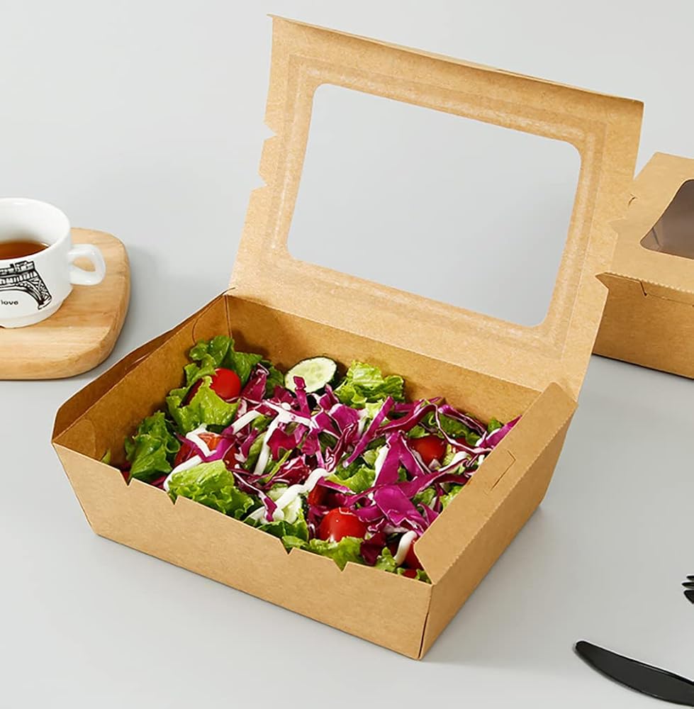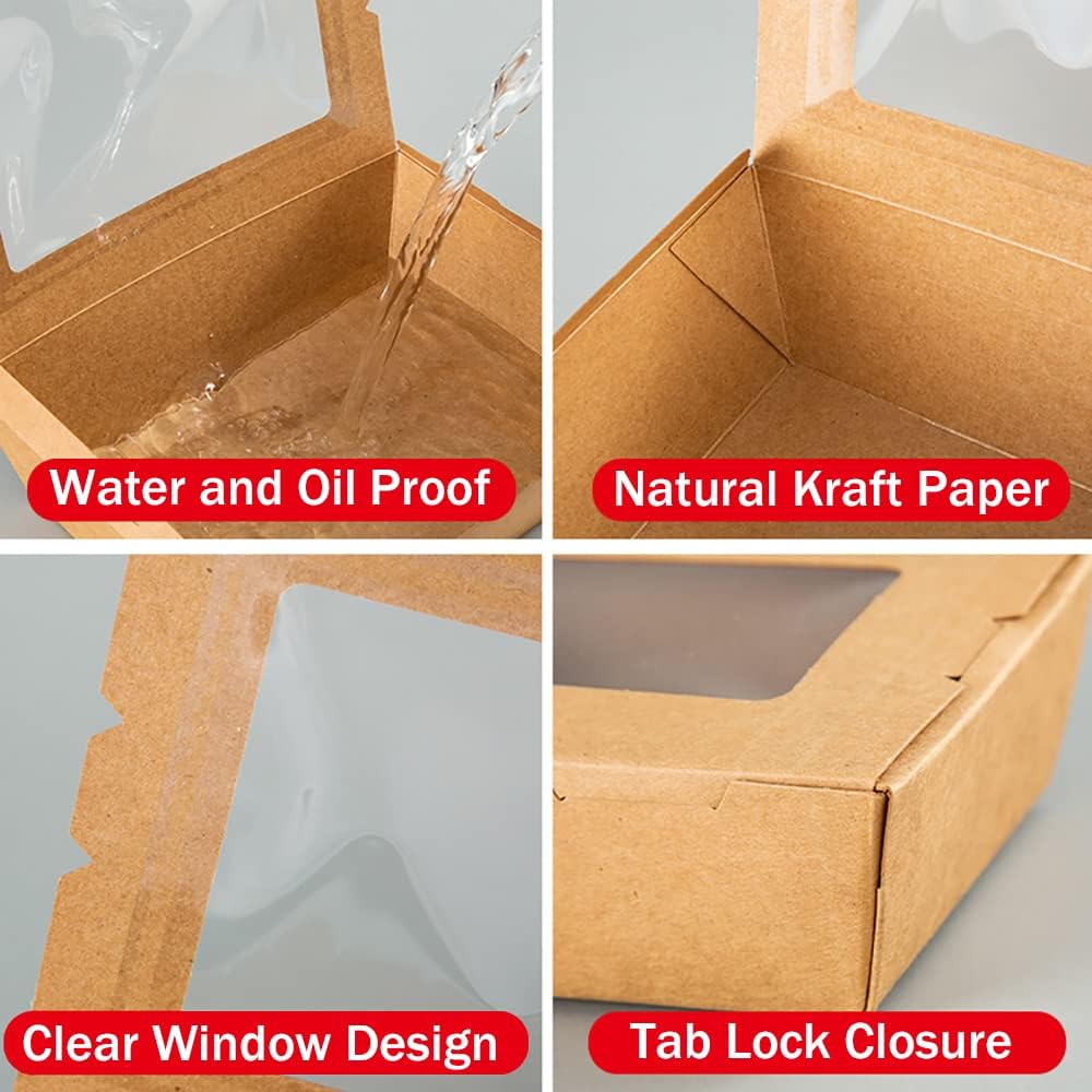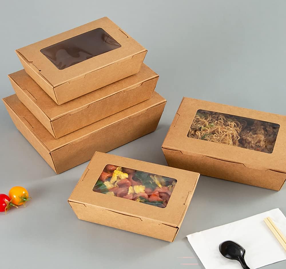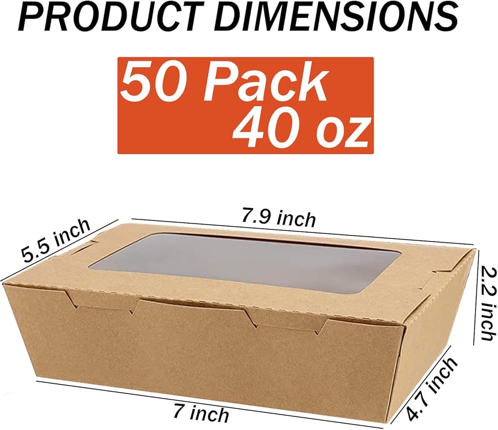 عبوة من 50 قطعة من حاويات الطعام بنافذة من سيزويكس، 40 اونصة، علب طعام ورقية بلون بني للاستعمال مرة واحدة، صناديق طعام كرافت للوجبات الغذائية للمطاعم والمطاعم والحفلات ومنضدة الامتياز والنزهات