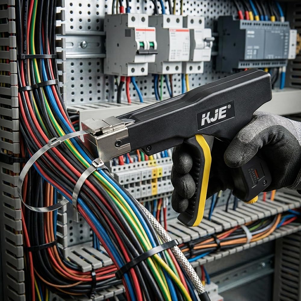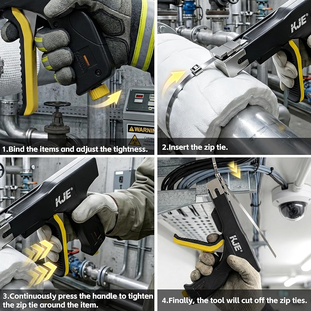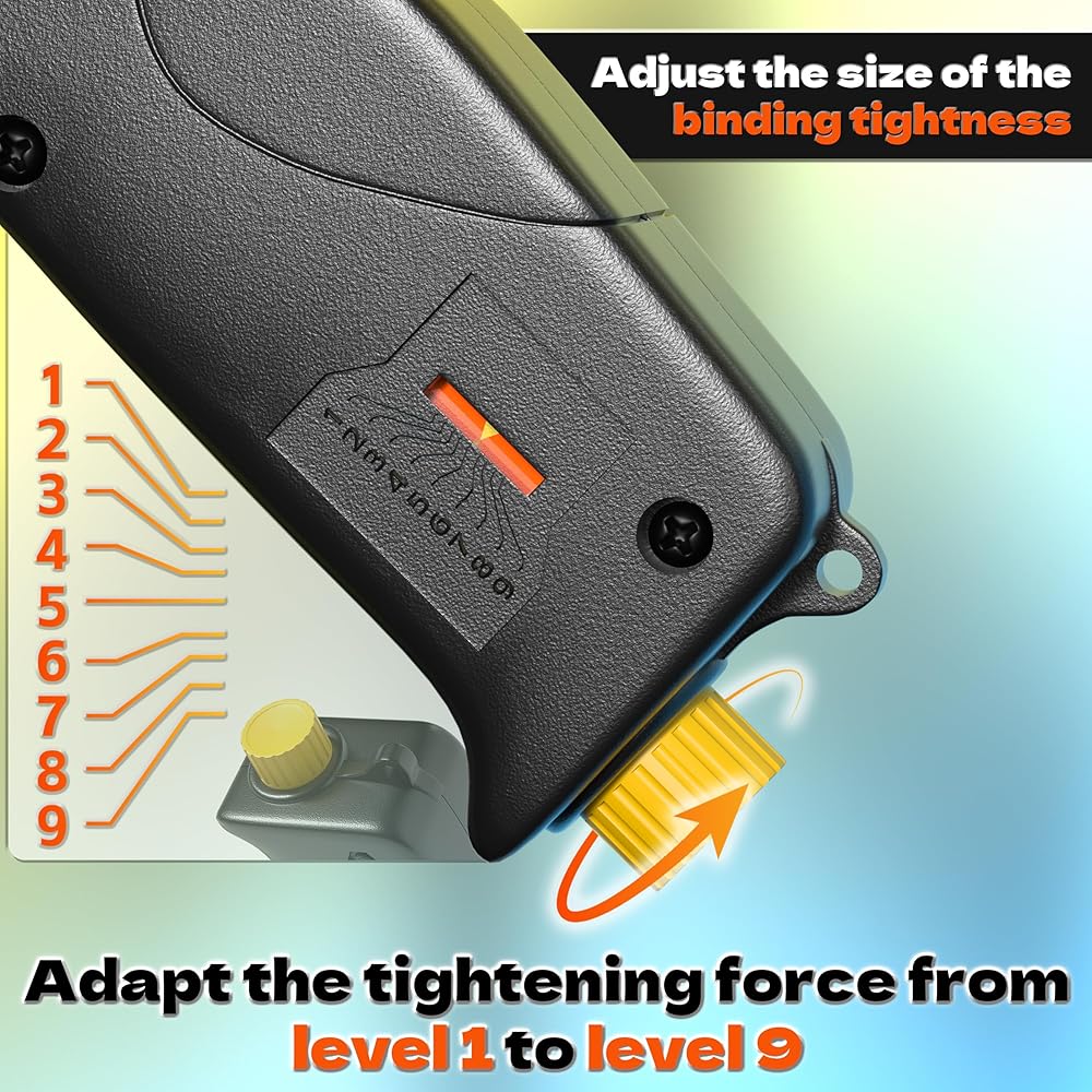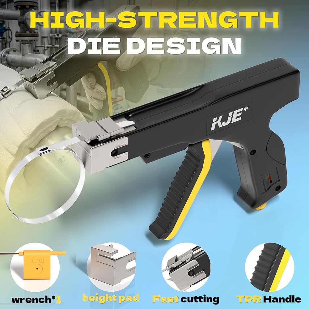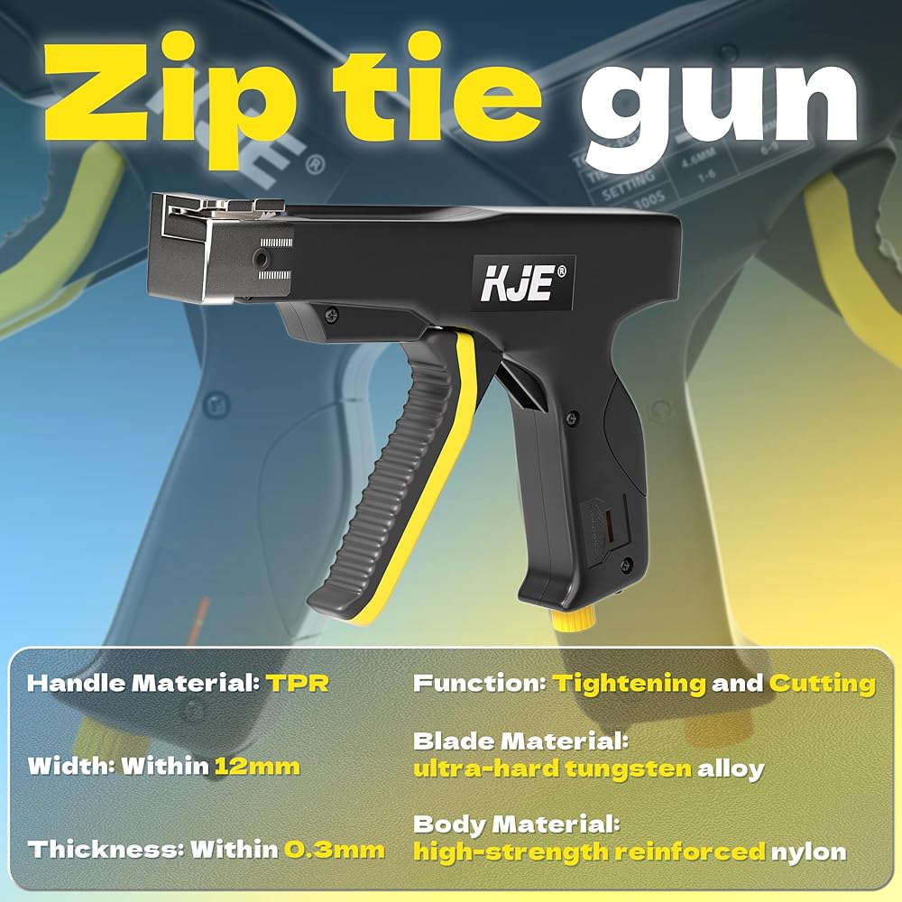 KJE Stainless Steel Cable Tie Gun, Metal Zip Tie Tool, Automatic Cable Tie Cutter, One-handed Operation, 9-level Adjustable Fastening Tie Wrap Gun, Zip Tie Gun Set with Height Pad