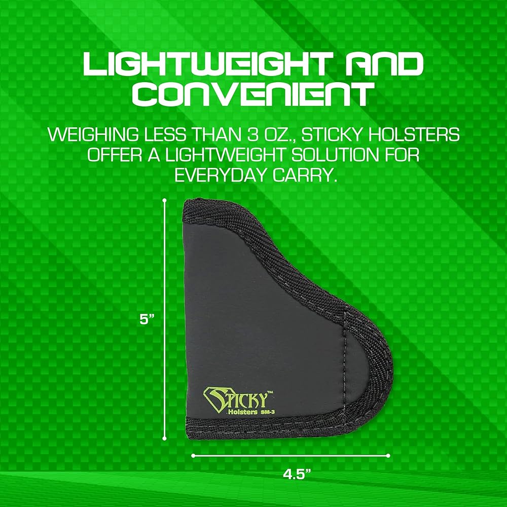 STICKY HOLSTERS SM3 - حافظة مصممة خصيصًا لتناسب أسطوانة الجيب 380 حتى 2.5 بوصة بدون ليزر (اللون أسود)