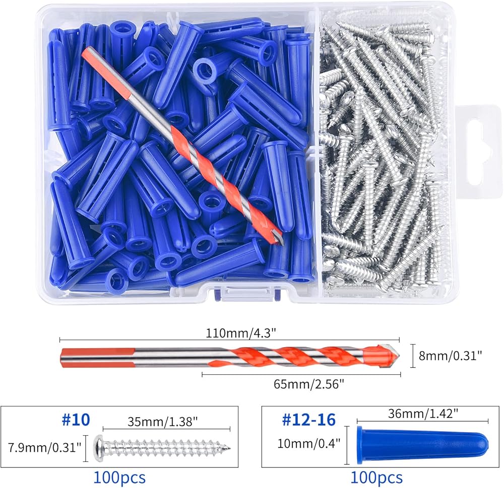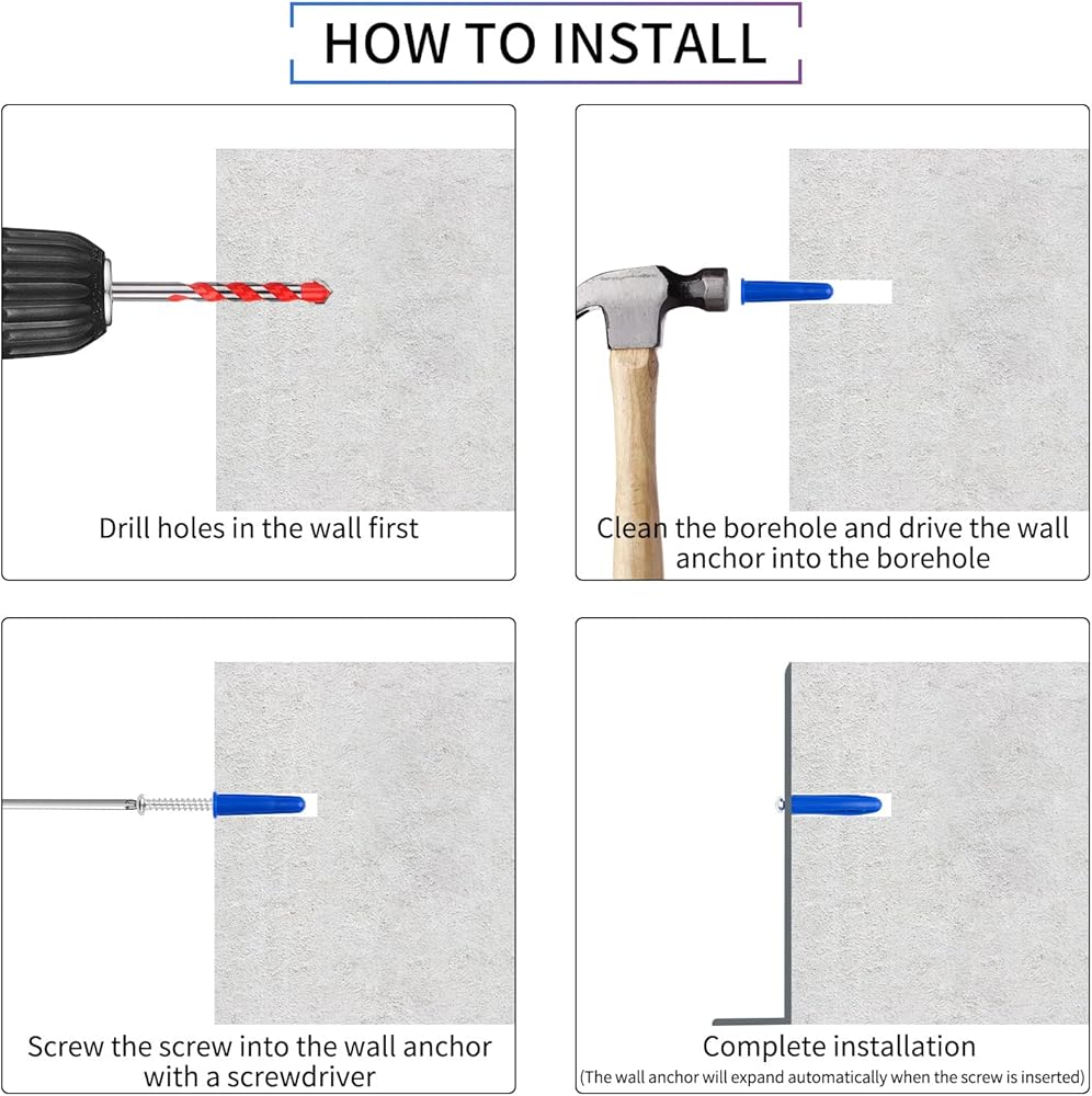 تعتبر أدوات التثبيت والمسامير الجدارية عالية الجودة هذه مثالية للجدران الجافة، وجدران الطوب، والجدران الإسمنتية، والجدران الخشبية، وجدران الجص وأكثر من ذلك، كما أن لقمة المثقاب متضمنة، وهي كافية لثقب الثقوب في هذه الجدران.