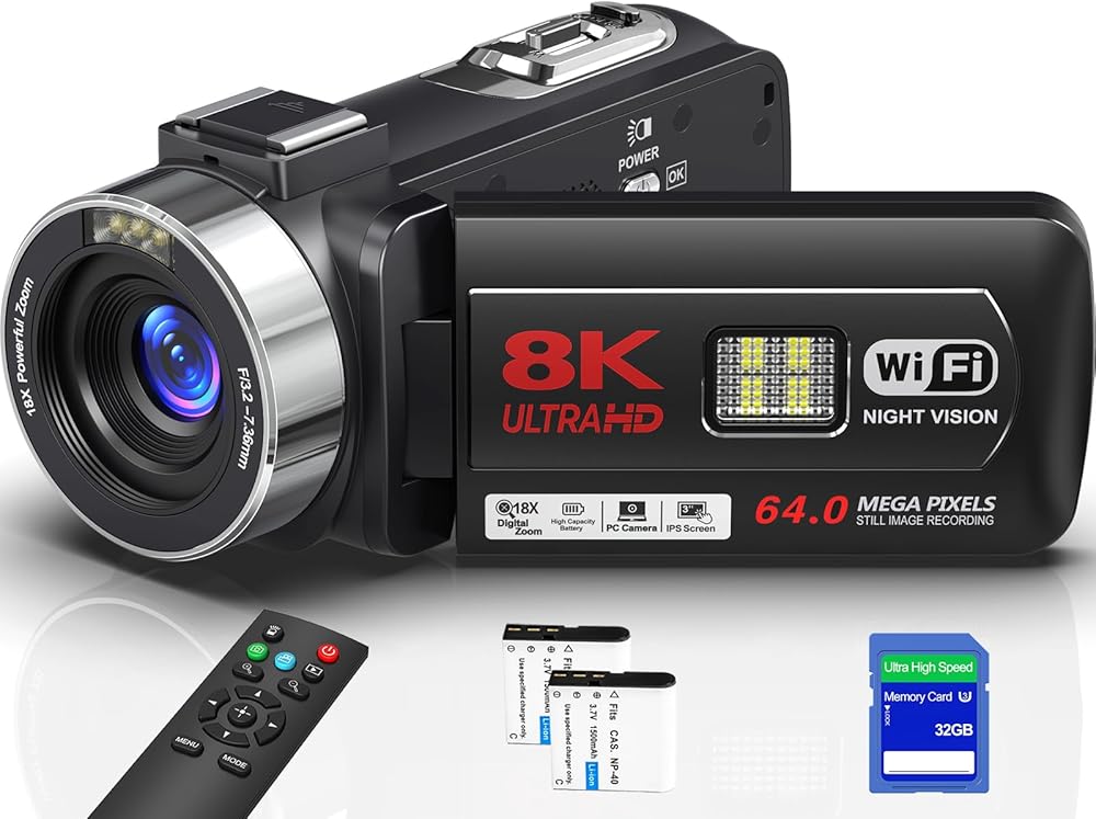 كاميرات فيديو 8K و64 ميجابكسل: تسجل كاميرا الفيديو 8K مقاطع الفيديو بدقة 2.7K و4K و6K و8K HD وتلتقط الصور بدقة 48MP و64MP، مما يسمح بالتقاط مقاطع فيديو وصور عالية الجودة. تدعم كاميرا الفيديو بطاقات SD بسعة تصل إلى 256 جيجابايت (الفئة 10 أو أعلى)، مما يجعلها مناسبة لعشاق التصوير الفوتوغرافي الذين يبحثون عن جودة ممتازة. يمكن لشاشة اللمس مقاس 3.0 بوصة أن تدور بمقدار 270 درجة، مما يتيح لك التقاط كل لحظة رائعة في حياتك اليومية بدقة.