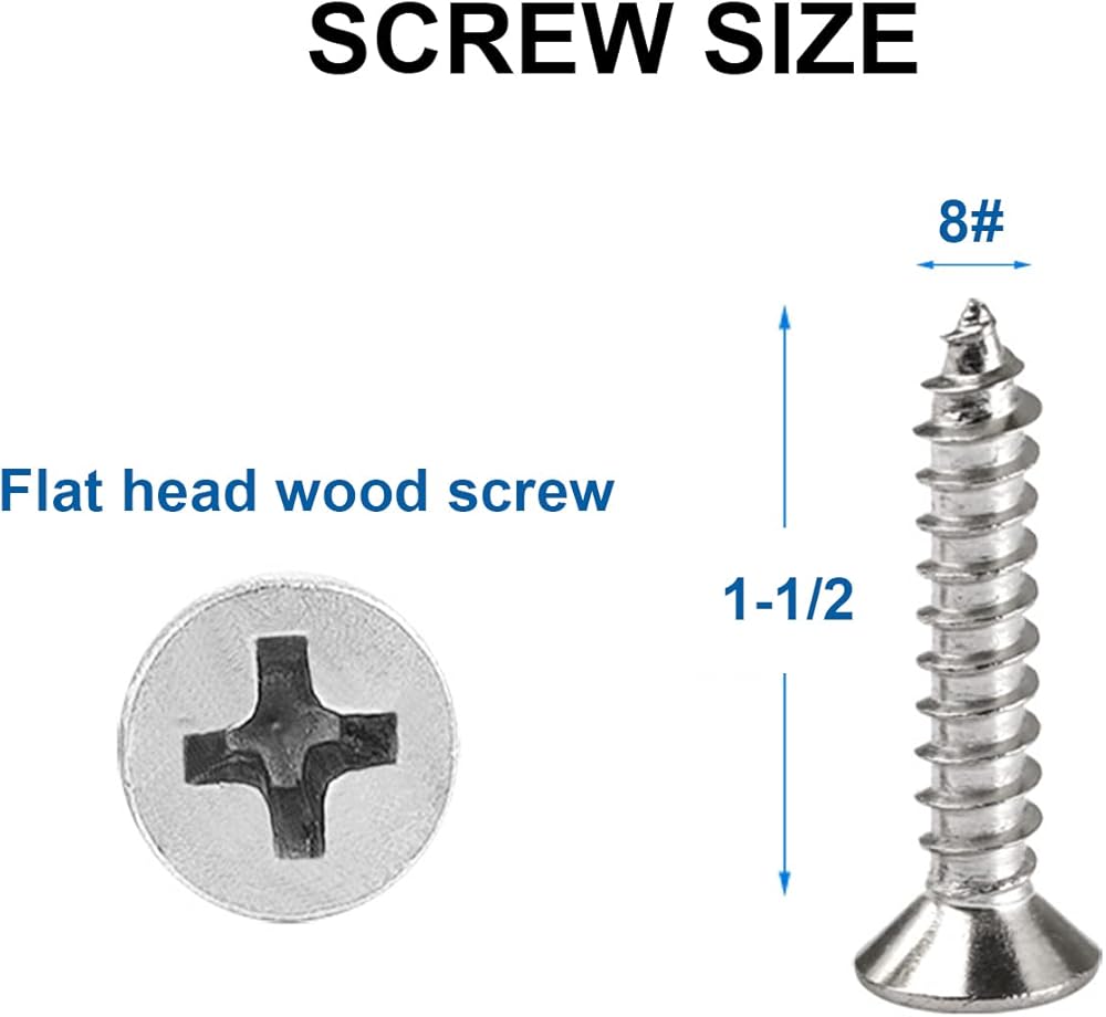 • الفولاذ المقاوم للصدأ عالي الجودة: هذه البراغي الخشبية ذات الرأس المسطح مصنوعة من الفولاذ المقاوم للصدأ 304 (18-8)، مما يمنح المادة مقاومة أفضل للتآكل مما يجعلها تدوم لفترة أطول من الأجهزة الأخرى.