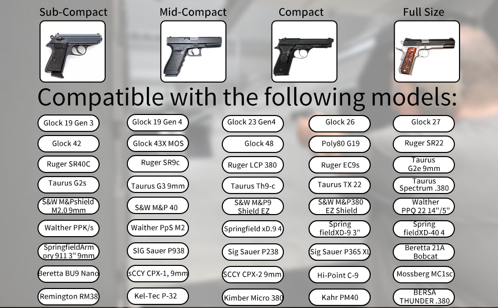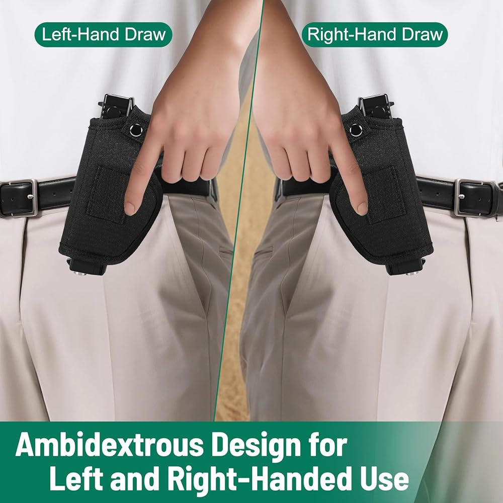 - 【نظام الملاءمة الذكية】 تصميم عالمي يناسب معظم المسدسات، مع خياطة قابلة للتعديل لملاءمة مخصصة