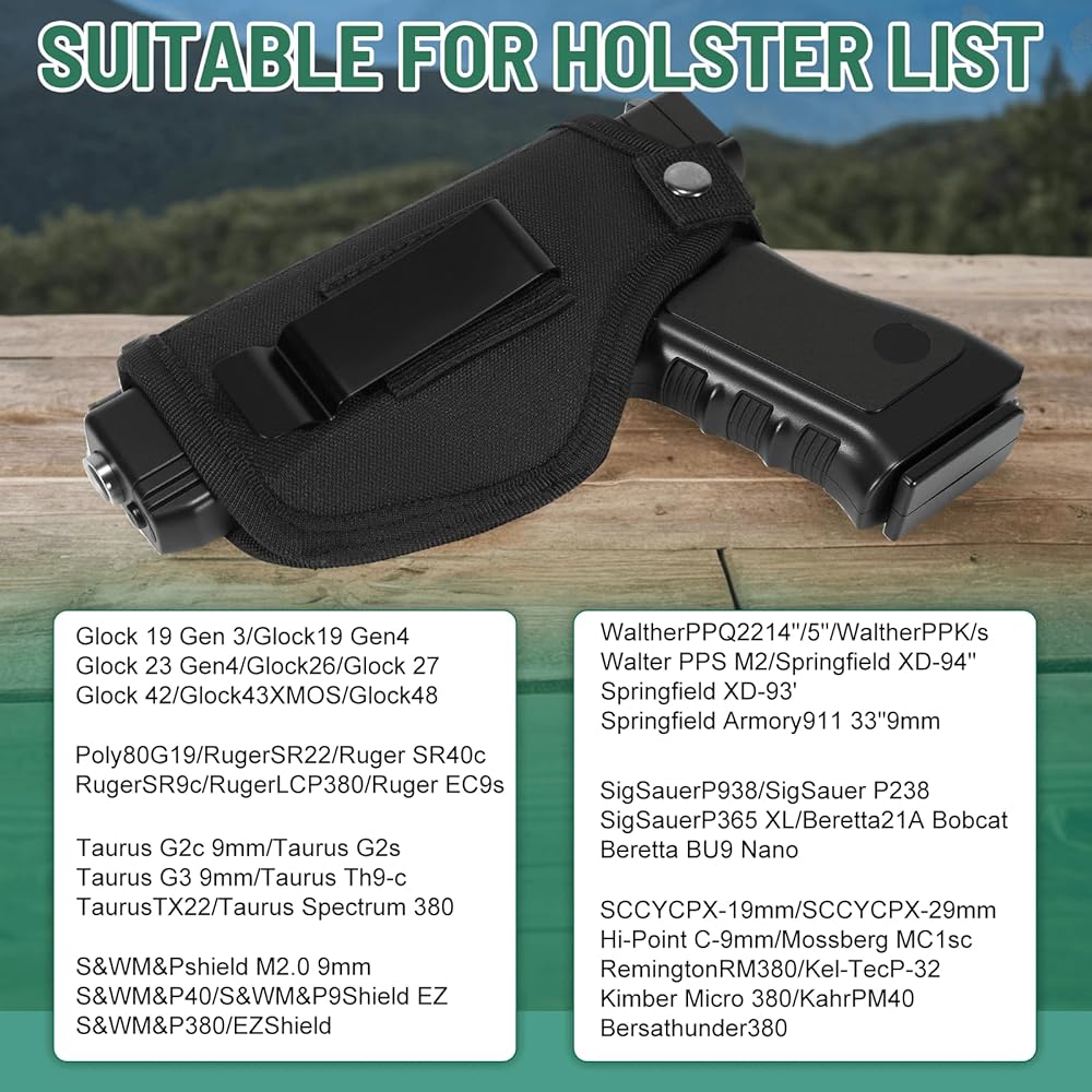 - 【خيارات حمل متعددة الاستخدامات】 تدعم أوضاع حمل مخفية متعددة بما في ذلك IWB/OWB، والورك، وخلف الورك، والسحب المتقاطع