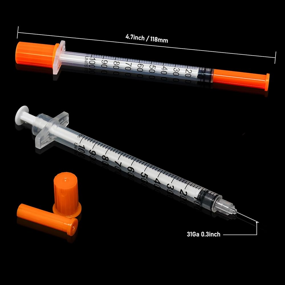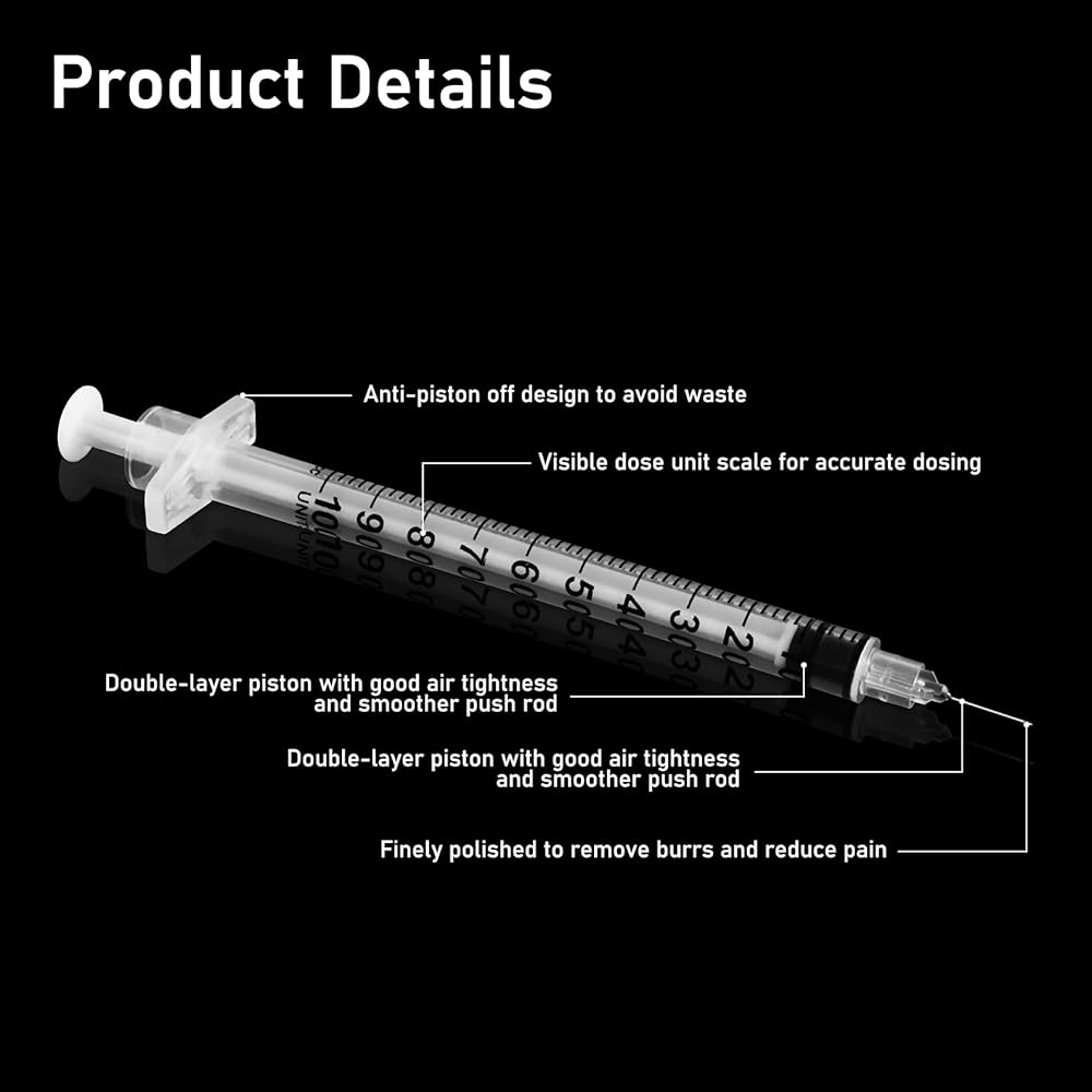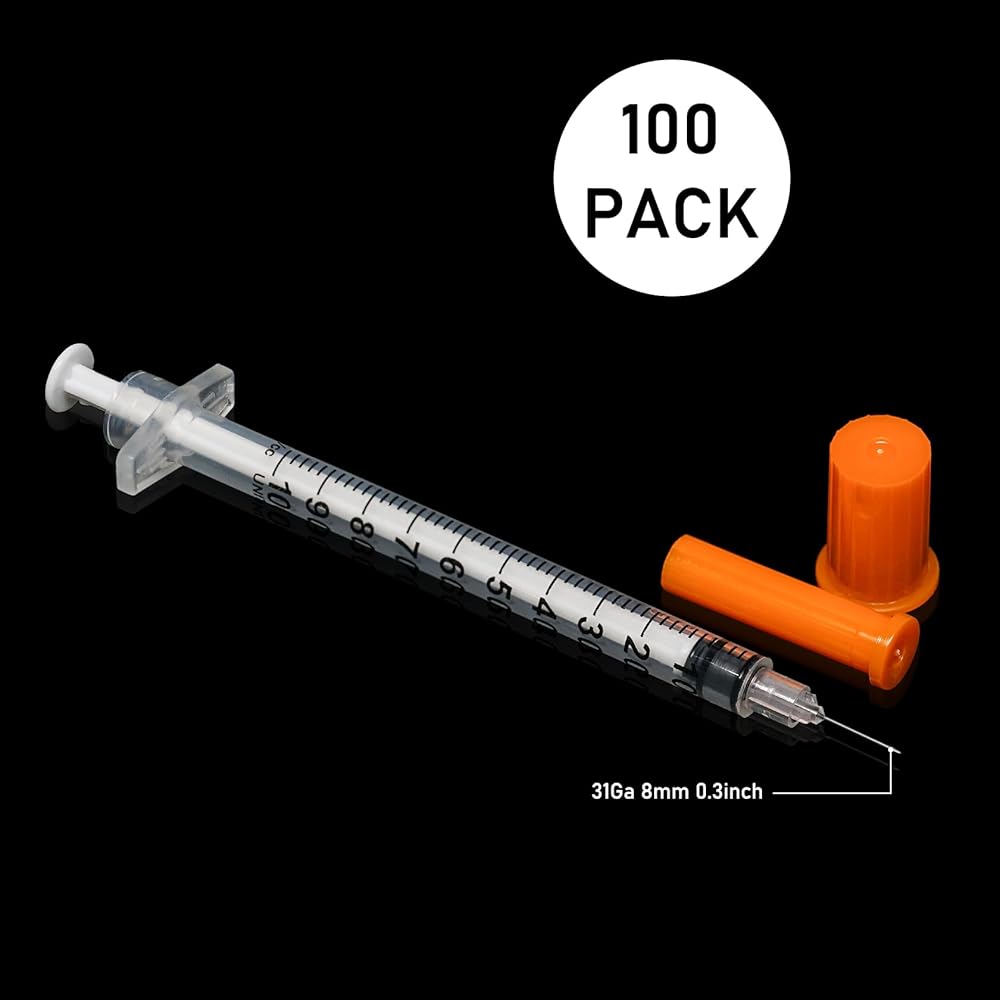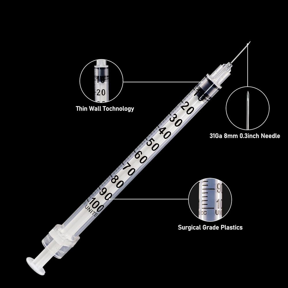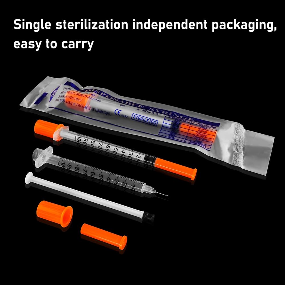 • 20-100 عبوة 1 مل/سم مكعب حقنة بإبرة قياس 30 1/2 بوصة.