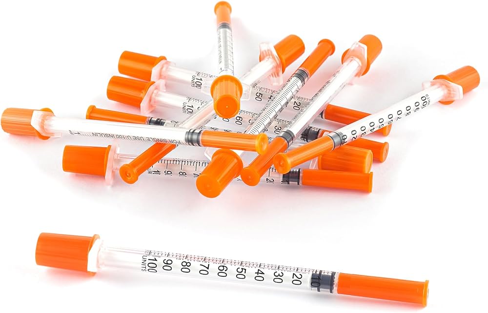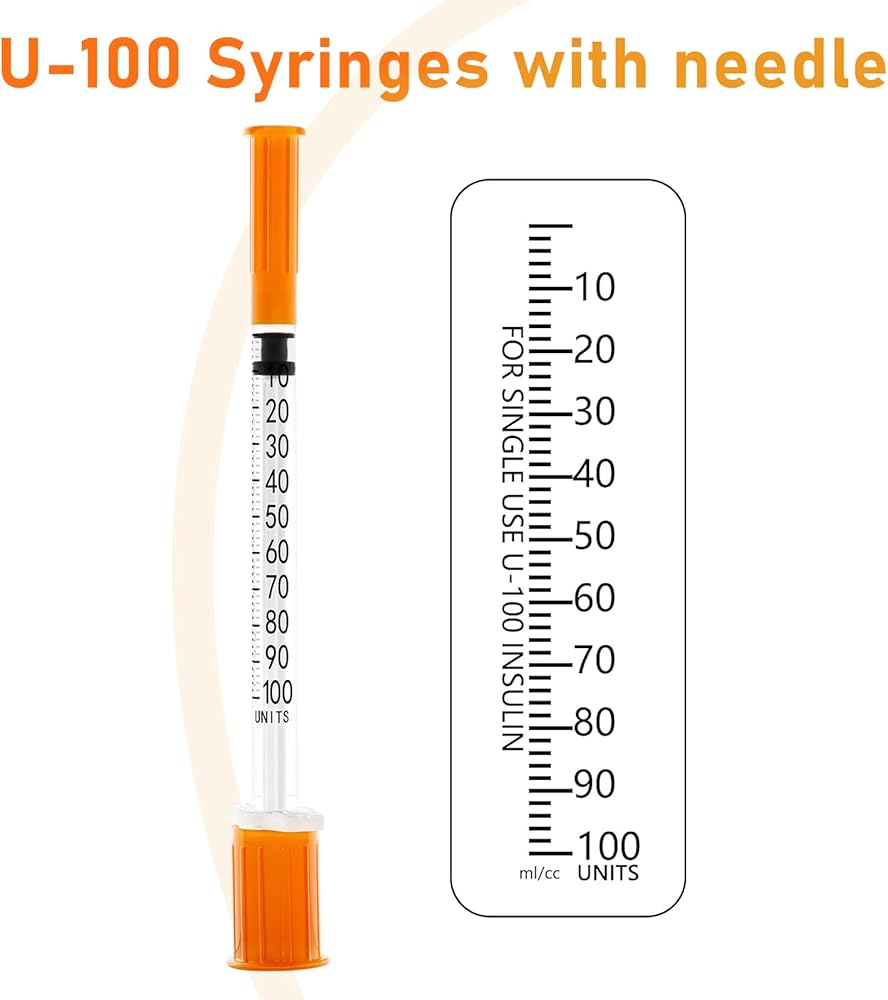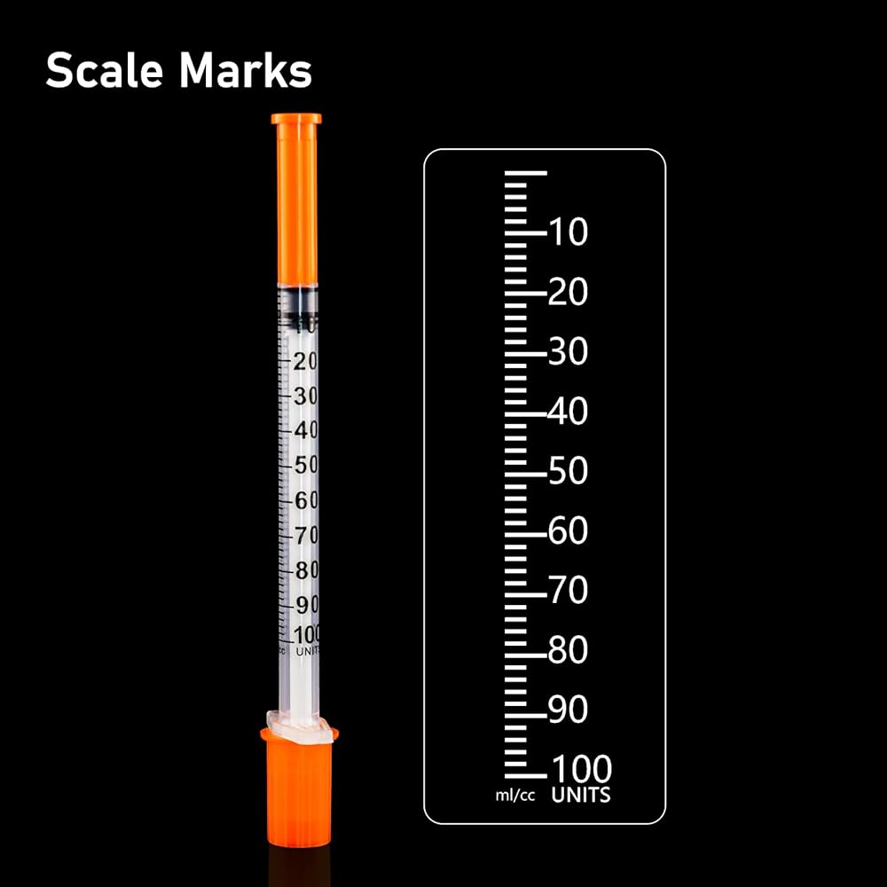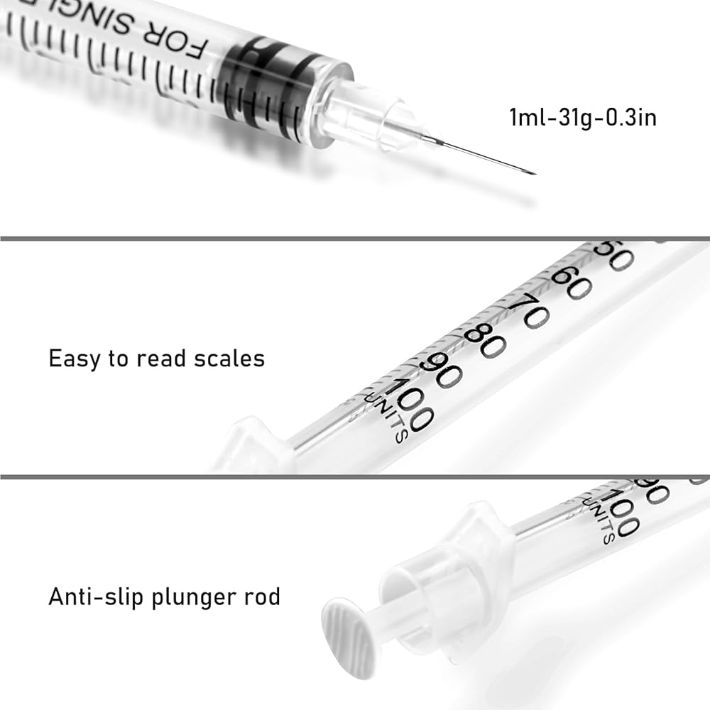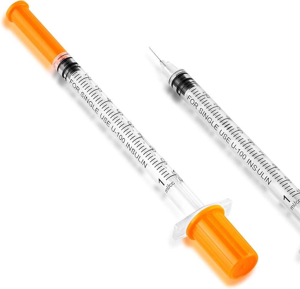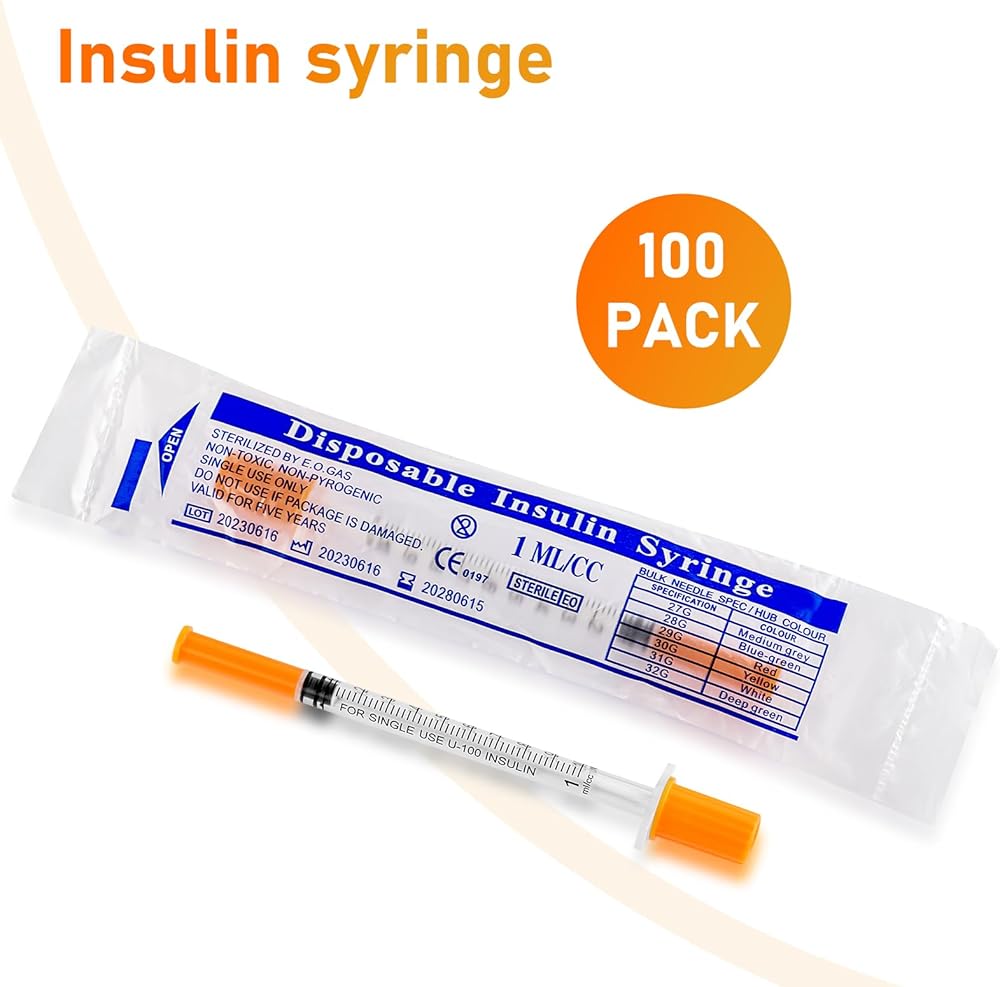 • 20-100 عبوة 1 مل/سم مكعب حقنة بإبرة قياس 30 1/2 بوصة.