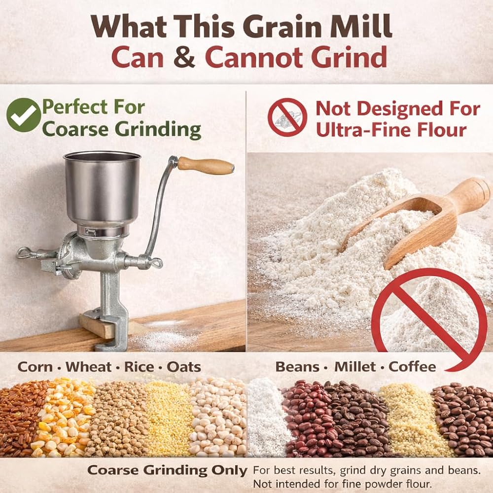 مطحنة الحبوب اليدوية، 7.5 رطل الثقيلة الحديد الزهر طاحونة اليد كرنك الذرة، الجدول المشبك صانع دقيق القمح للقهوة والمكسرات والشوفان وتخمير المنزل