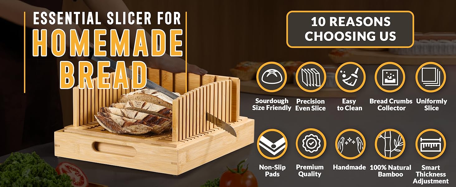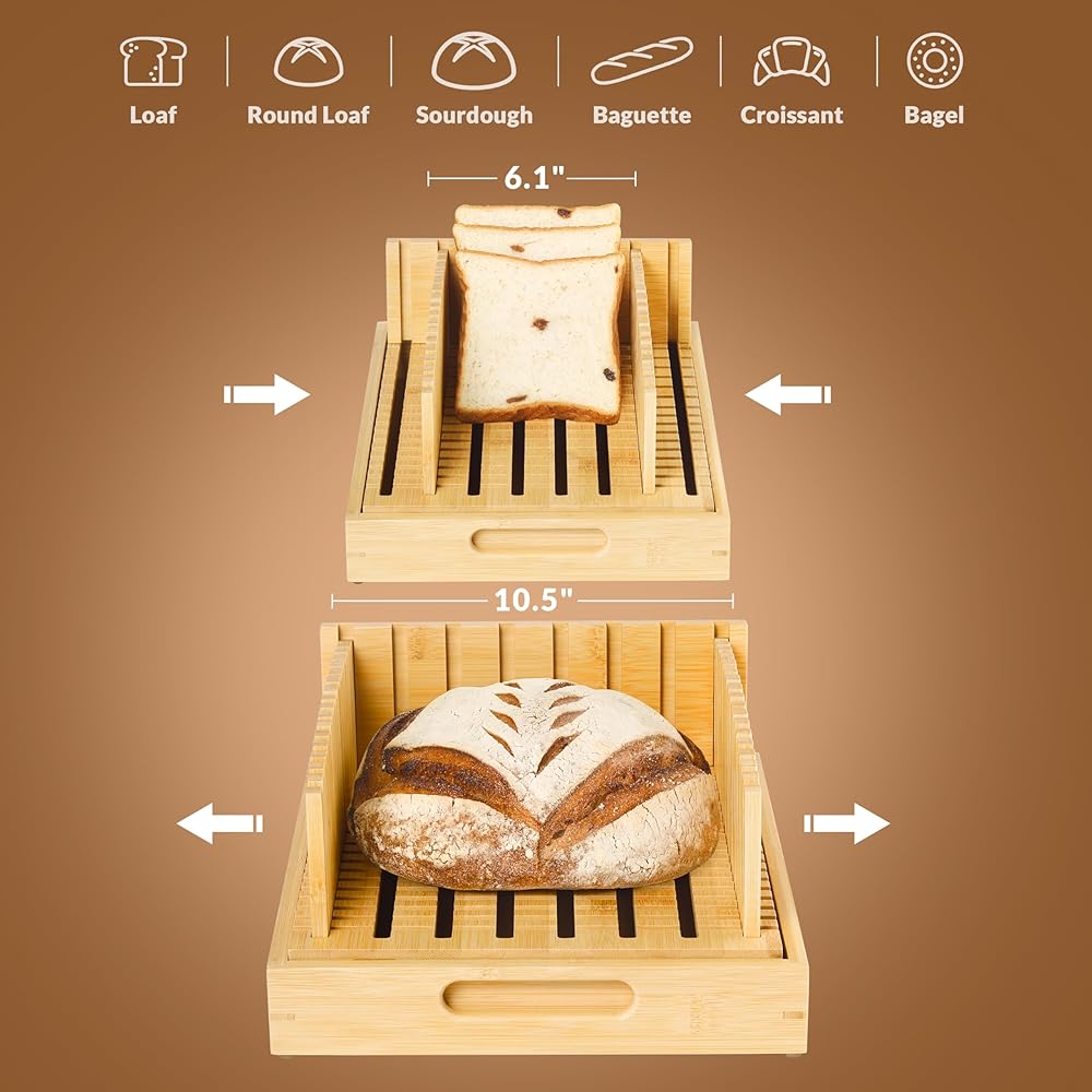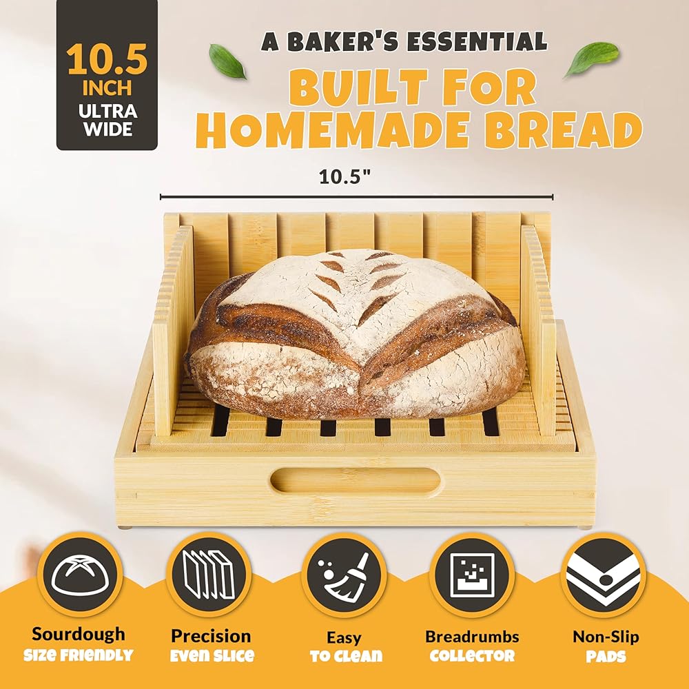 شرائح مثالية في كل مرة - تضمن فتحات السكاكين الموجهة الحصول على قطع متساوية على طراز المخبوزات دون تمزيق رغيفك. مثالية لأي روتين تقطيع الخبز الحرفي