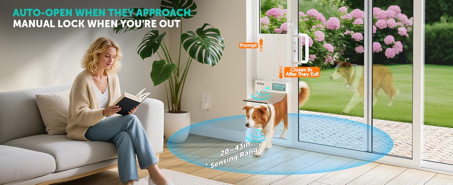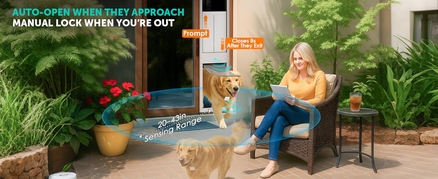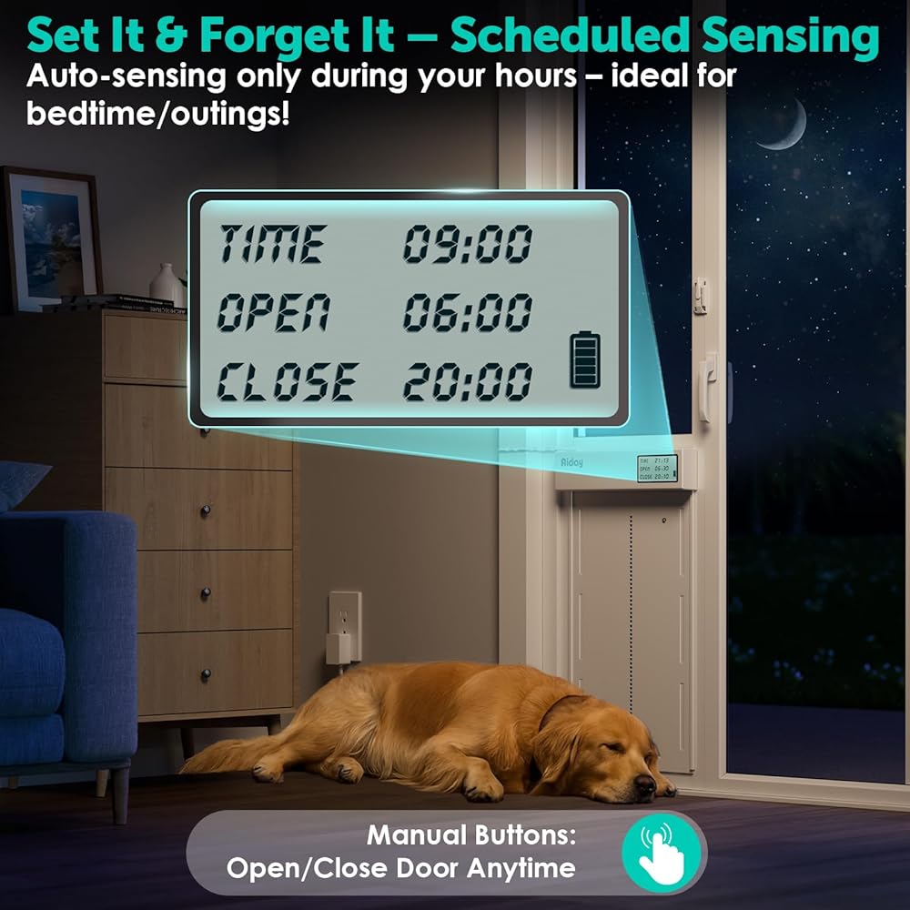 جدولة مخصصة وتحكم يدوي: اضبط ساعات الوصول مباشرة على باب الكلب الزجاجي المنزلق الأوتوماتيكي - وهو مثالي للصباح البطيء عندما تريد النوم أو القيام برحلات قصيرة بعيدًا. تأتي الجراء ذات الياقات وتذهب بحرية خلال الأوقات المحددة لك؛ بعد ساعات العمل، يتجاهل الباب الياقات (لذا لا يمكن الخروج من الباب في منتصف الليل!). يتيح لك التحكم اليدوي التجاوز في أي وقت، فقط في حالة حدوث ذلك.