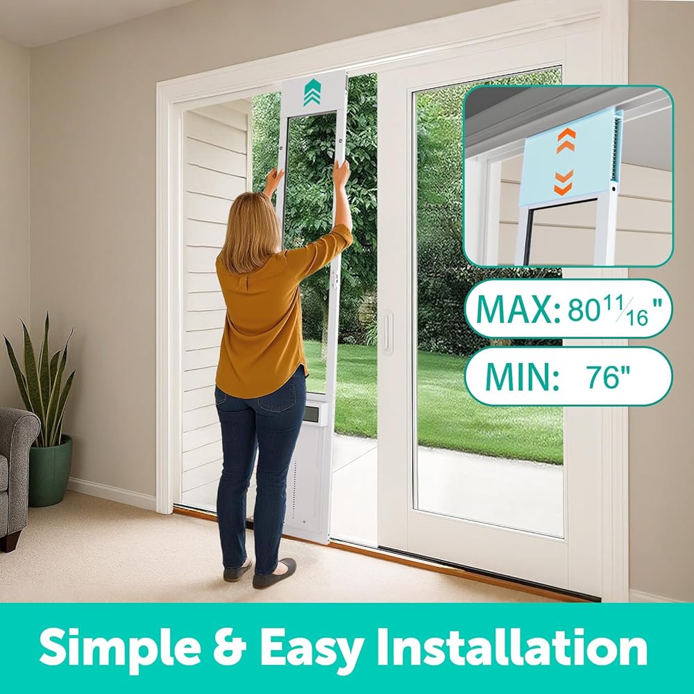 يناسب الحيوانات الأليفة الكبيرة جدًا (حتى 220 رطلاً): يحتوي باب الكلاب الزجاجي المنزلق الأوتوماتيكي Aiday على إطار قابل للتعديل يناسب الارتفاعات من 76 بوصة إلى 80-11/16 بوصة. يبلغ عرض فتحة الباب الزجاجي 13.4 بوصة. نصيحة احترافية: للحصول على ملاءمة مثالية، قم بالقياس من المسار العلوي إلى المسار السفلي الداخلي لإطار الباب المنزلق المصنوع من الألومنيوم قبل التثبيت.