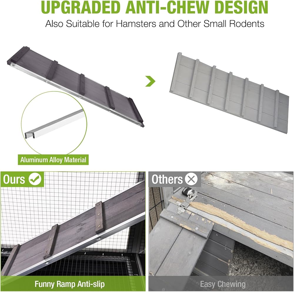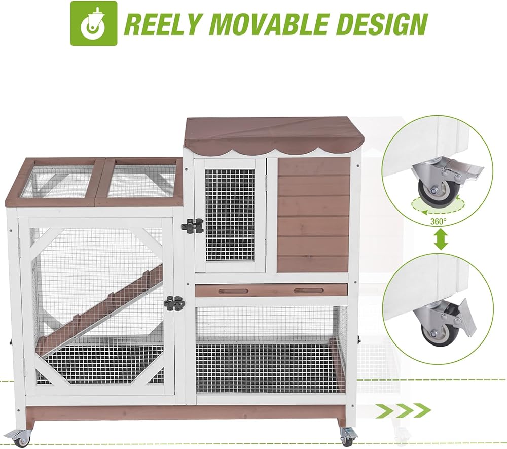 بناء قوي ومقاوم للمضغ: مصنوع من الخشب الصلب وإطار من سبائك الألومنيوم المقوى، هذا القفص يتحمل المضغ وأضرار الطقس والتآكل لحماية طويلة الأمد. مثالية للأرانب النشطة والخنازير الغينية والحيوانات الأليفة الصغيرة.