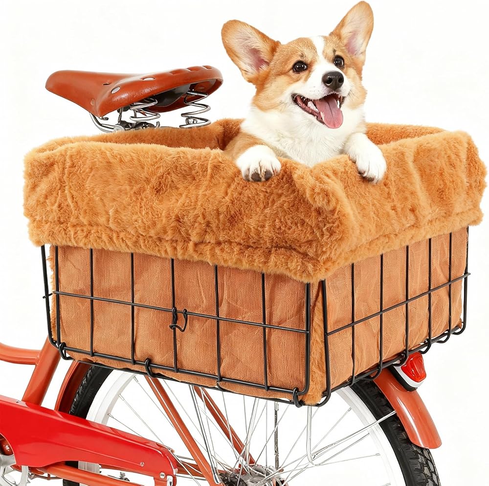 • "Designed specifically for pets: Our pet bike basket features a soft, warm plush lining, providing your dog with a comfortable bed even outdoors. The interior design includes small holes to secure your pet's leash inside the basket, help secure. "