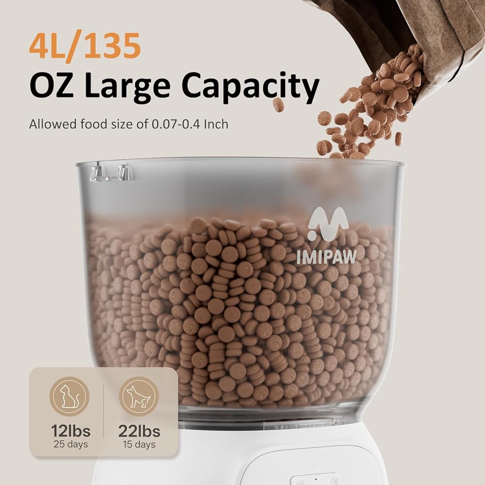 التغذية بالتحكم عن بعد: تتميز وحدة تغذية القطط الأوتوماتيكية باتصال WIFI، مما يسمح لك بجدولة وجبات حيوانك الأليف والتحكم فيها عبر تطبيق ذكي من أي مكان، مما يضمن إطعام قطتك في الوقت المحدد حتى عندما تكون بعيدًا.