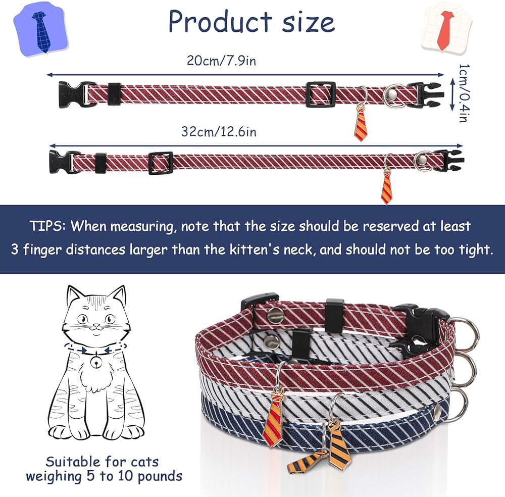 3 قطع من طوق القطط، أشرطة للقطط، طوق للقطط، قابل للتعديل 7.8-11.8 بوصة، مجموعات أطواق للقطط سريعة الفك مع ربطات عنق صغيرة للفتيات والأولاد والقطط، شريط قطني كلاسيكي