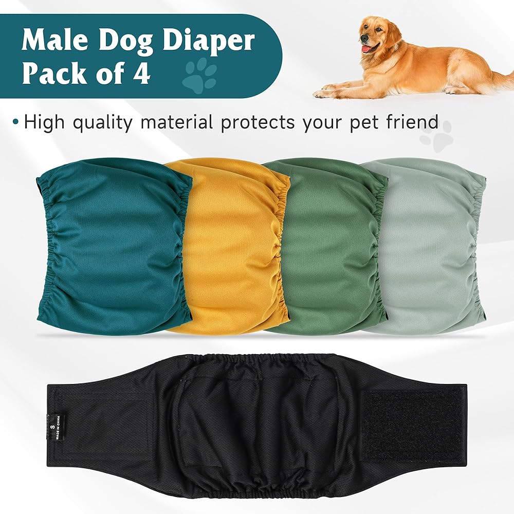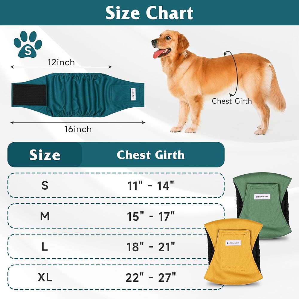 المقاس: مجموعة حفاضات الكلاب المخصصة للكلاب الذكور مكونة من 4 قطع تأتي بعدة مقاسات (S-XL)، يمكنك اختيار المقاس الذي يناسب حيوانك الأليف. يرجى الرجوع إلى جدول المقاسات الخاص بنا للحصول على التفاصيل.
