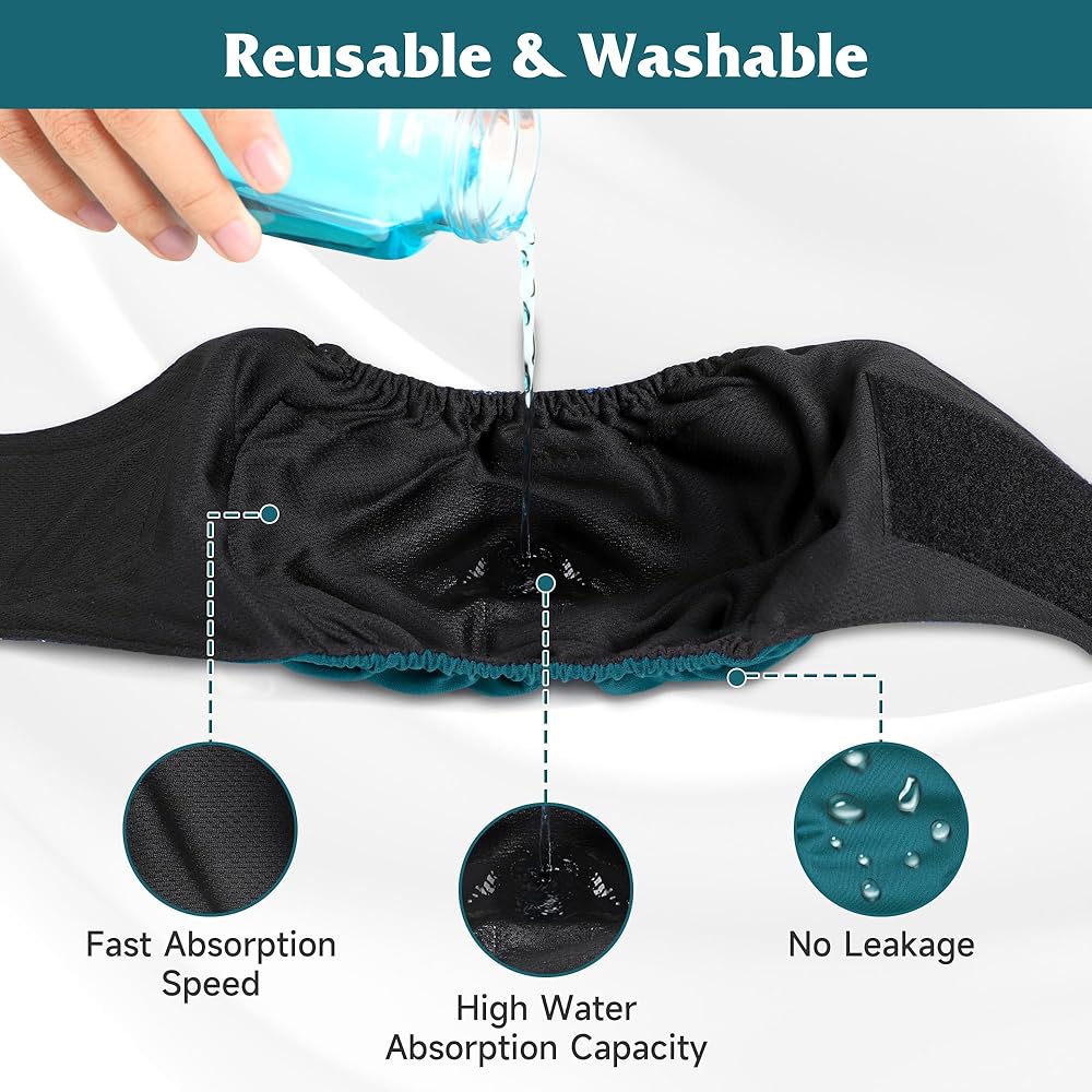 قابلة للغسل وإعادة الاستخدام: تتميز حفاضات الكلاب القابلة لإعادة الاستخدام لدينا بجودة عالية، وتدعم الغسيل اليدوي والغسيل الآلي، ويمكن إعادة استخدامها بعد الغسيل والتجفيف، كما تقلل حفاضات الكلاب القابلة للغسل من استخدام الحفاضات التي تستخدم لمرة واحدة وتقلل من ضغط التخلص من النفايات. لن تحتاج بعد الآن إلى حفاضات يمكن التخلص منها ولن تضطر إلى دفنها!