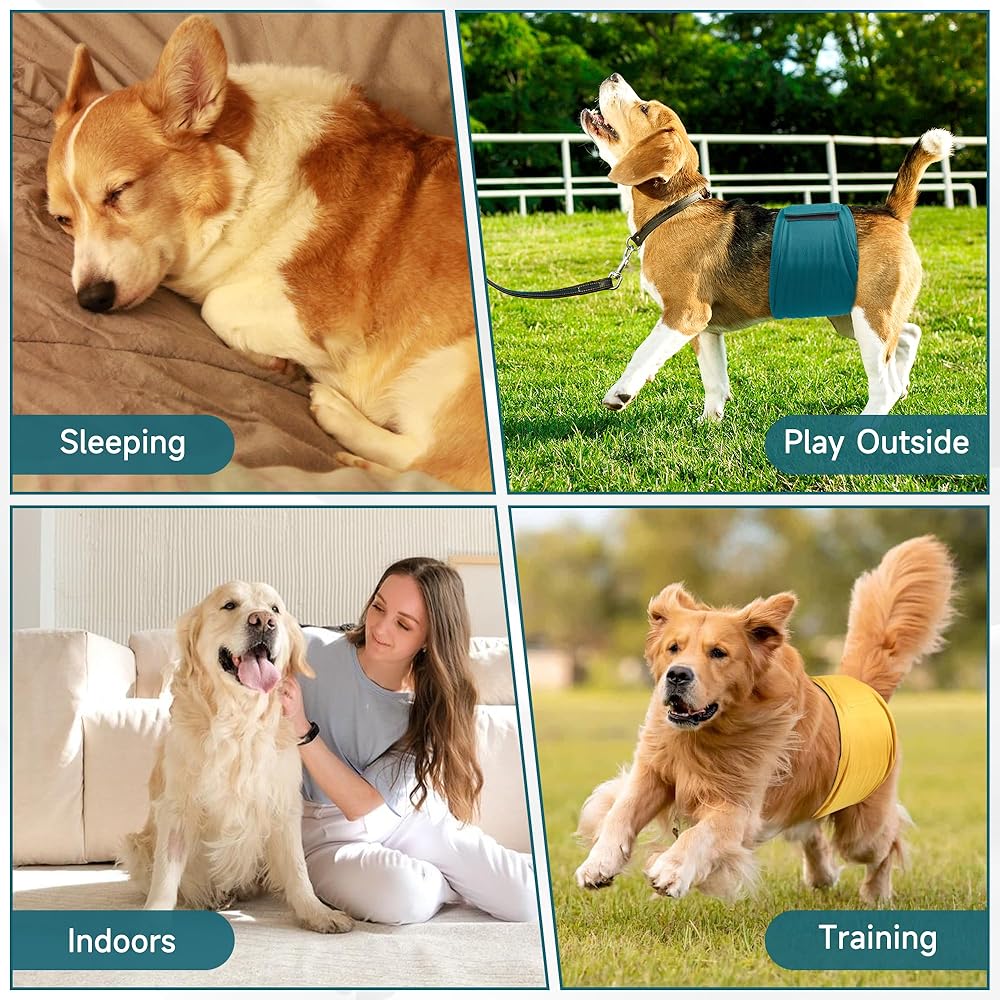 مادة مريحة: أحزمة البطن للكلاب الذكور لدينا مصنوعة من مواد عالية التهوية وعالية الامتصاص وناعمة ولن تضر جلد كلبك، على عكس الحفاضات التي تستخدم لمرة واحدة والتي يمكن أن تحتك أو تسبب الحكة أو ذات ملمس مزعج.. تناسب أغطية الكلاب الذكور جسم كلبك ويمكن تثبيتها بإحكام على جسم الجرو الخاص بك.