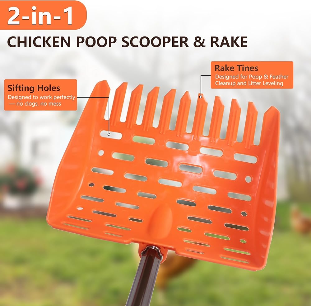 استخدام متعدد الاستخدامات - لأقفاص الدجاج، ومناطق الحيوانات الأليفة، والمروج والمزيد ليس فقط للدجاج - رائع لتنظيف صناديق فضلات القطط، وفراش الحيوانات الصغيرة، وحفر الرمل، وفراش جوز الهند، وفراش القهوة، وحتى تنظيف البقع في حديقتك. أداة متعددة الأغراض يجب اقتناؤها لأصحاب الحيوانات الأليفة ومربي المنازل.