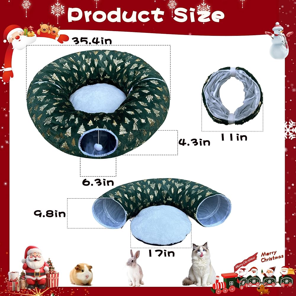 Wrap your tree in cozy elegance! LUCKITTY's cat tunnel combines festive Christmas tree prints with plush red jacquard fabric for a luxe yet functional solution. This ultra-soft, 10-inch tall tunnel hides beneath your tree, its dangling ball luring cats away from fragile decor. The tightly woven jacquard cushions paws while resisting claws – no more scratched ornaments! Double-stitched seams ensure durability during pouncing sessions. Plus, the rich red hue and raised tree motifs blend beautifully with holiday lights. Safety never looked so stylish – give cats joy and your tree glamorous protection!