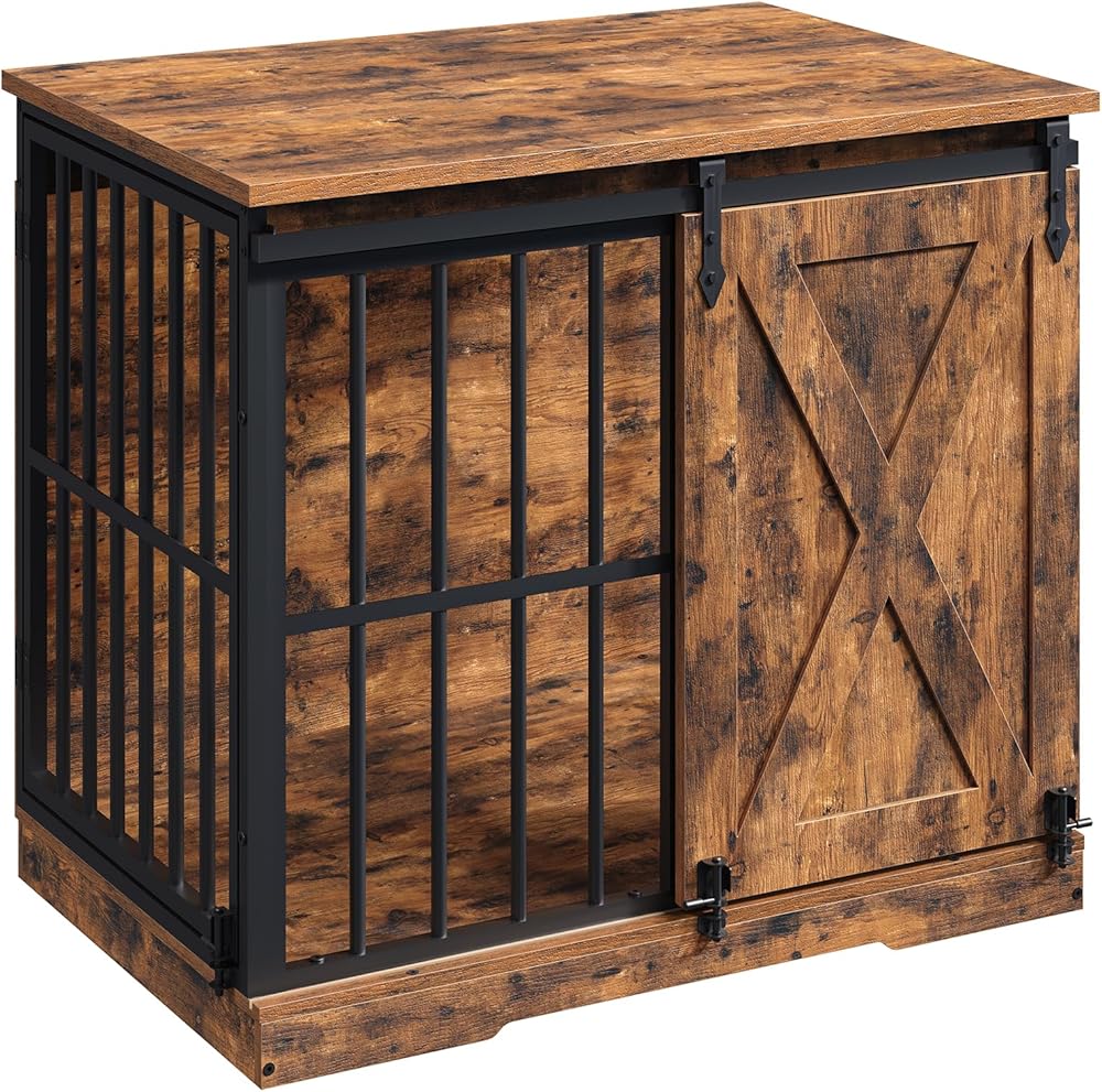 بيت للكلاب بأبواب مزدوجة: يتميز قفص الكلاب المصمم على شكل أثاث بمداخل أمامية وجانبية لسهولة الوصول إليه. ولا يوفر باب الحظيرة المنزلق الفريد المساحة فحسب، بل يضيف لمسة جمالية عتيقة، ويمتزج بسلاسة في غرفة المعيشة أو الردهة أو غرفة النوم أو الزاوية.