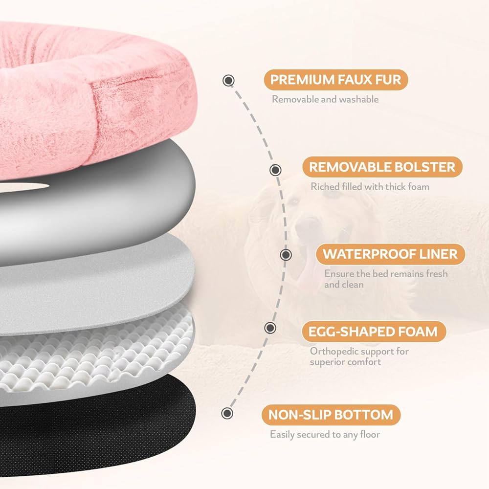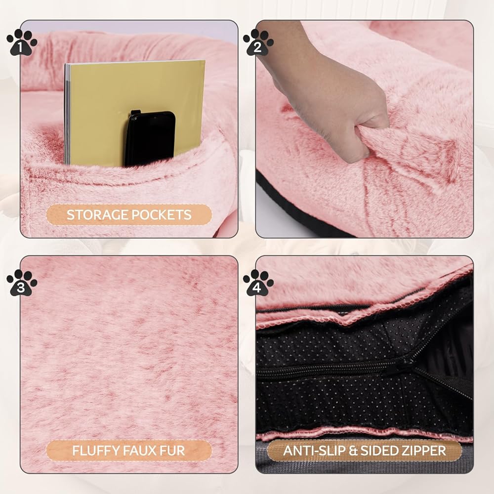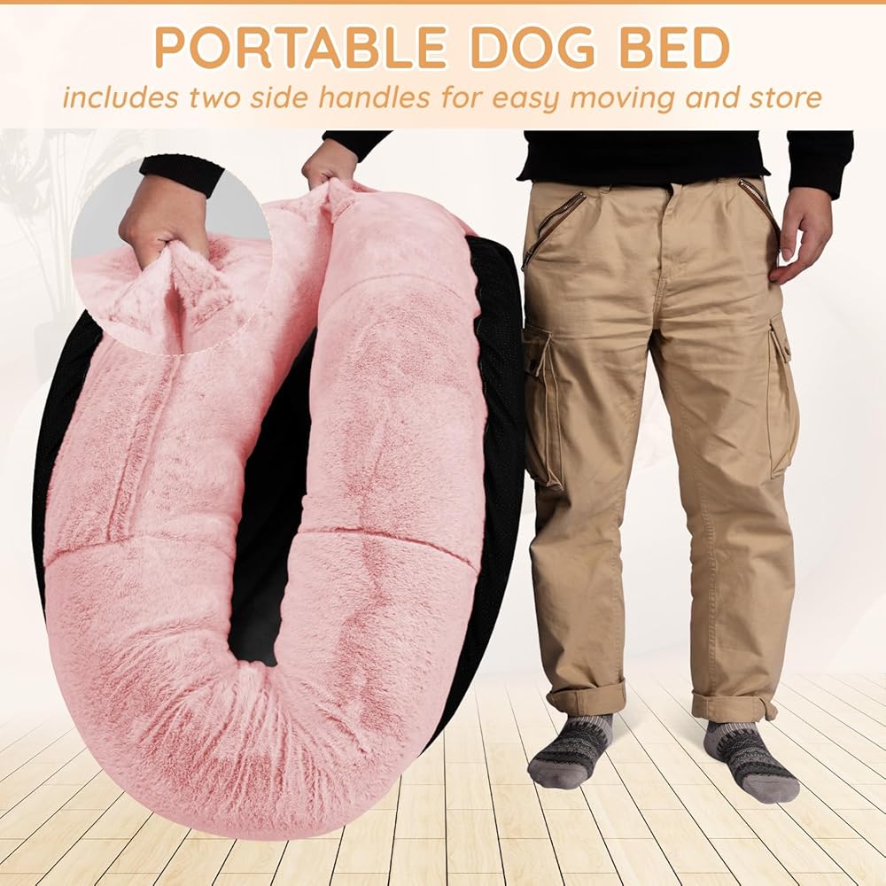 【متعدد الاستخدامات ومحمول】يوجد مقبضان جانبيان على سرير الكلب الكبير مما يسمح لك بأخذه بسهولة إلى المكتب وغرفة النوم وغرفة المعيشة والخارج والأماكن الأخرى للاستخدام. يضمن الجزء السفلي من البلاستيك غير القابل للانزلاق بقاء السرير في مكانه، مما يوفر شعورًا بالأمان أثناء دخولك أنت وحيوانك الأليف إلى السرير أو الخروج منه.