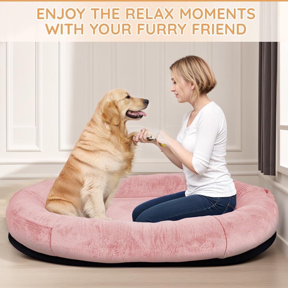 【سرير للكلاب بحجم بشري】بأبعاد إجمالية تبلغ 71 × 45 × 14 بوصة، لم يتم تصميم سرير الكلاب البشري الكبير فقط ليكون مكانًا ممتازًا للنوم أو تجديد القيلولة، ولكنه خيار مثالي للحظات مشتركة مع عائلتك وحيواناتك الأليفة.