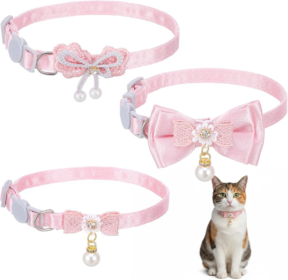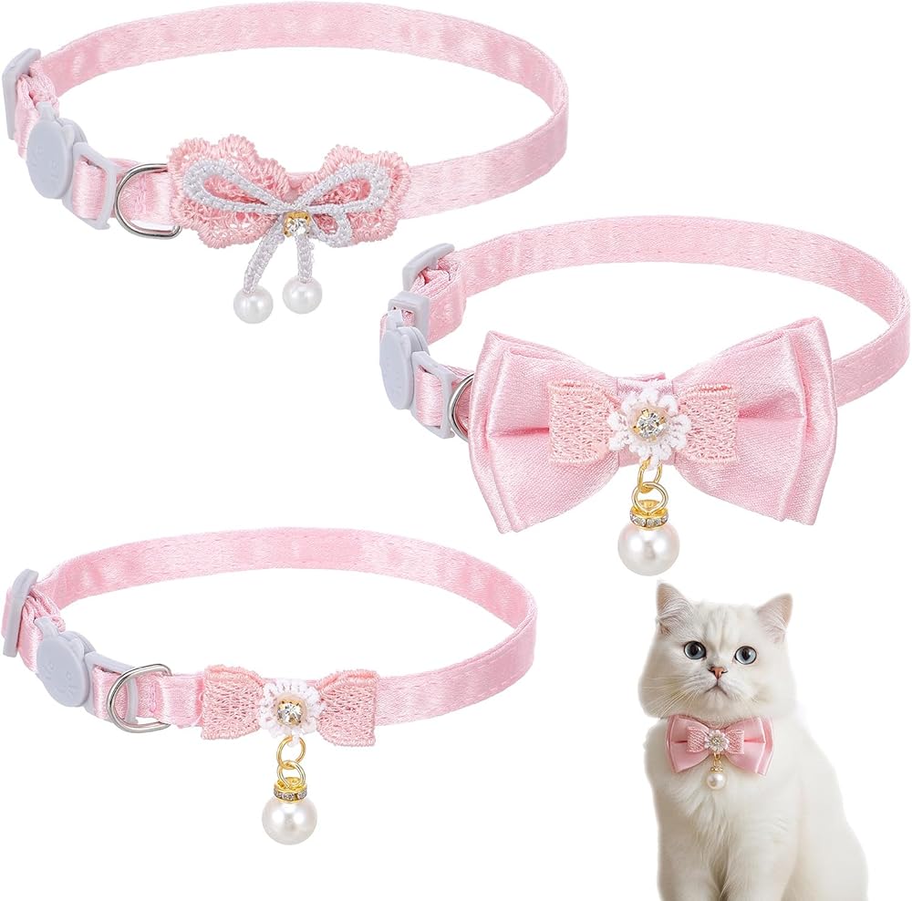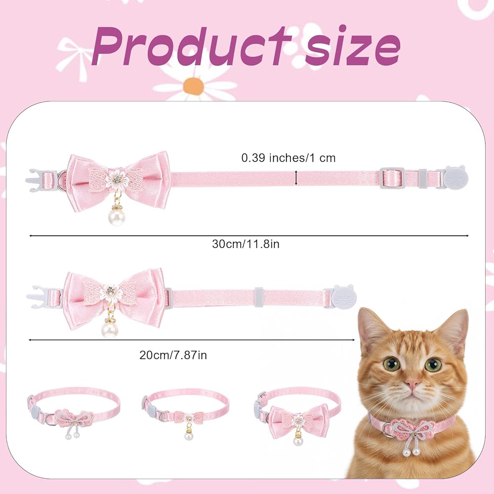 Hpmjz 3Pcs Adorable Cat Collar with Bow, Cute Kitten Collars for Girl Cats Adjustable Pink Cat Bows Breakaway Safety Cat Bowtie Collar Pet Collar with Safety Buckle Soft Collars with Bowtie for Cats