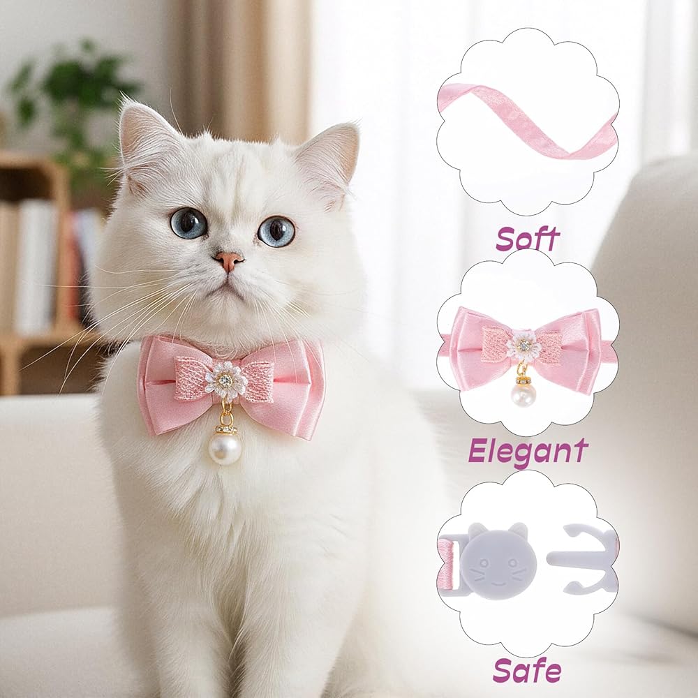 【Cat Bows】This cute cat collar features a charming pink bow design with a delicate pearl pendant. That adds a touch of style to your feline friend's look. Let your cat stand out from the crowd with this fashionable accessory.
