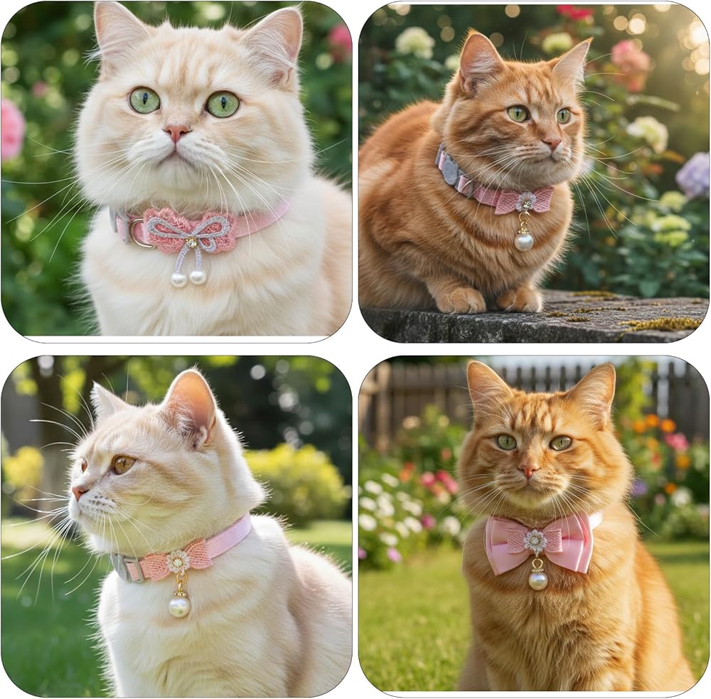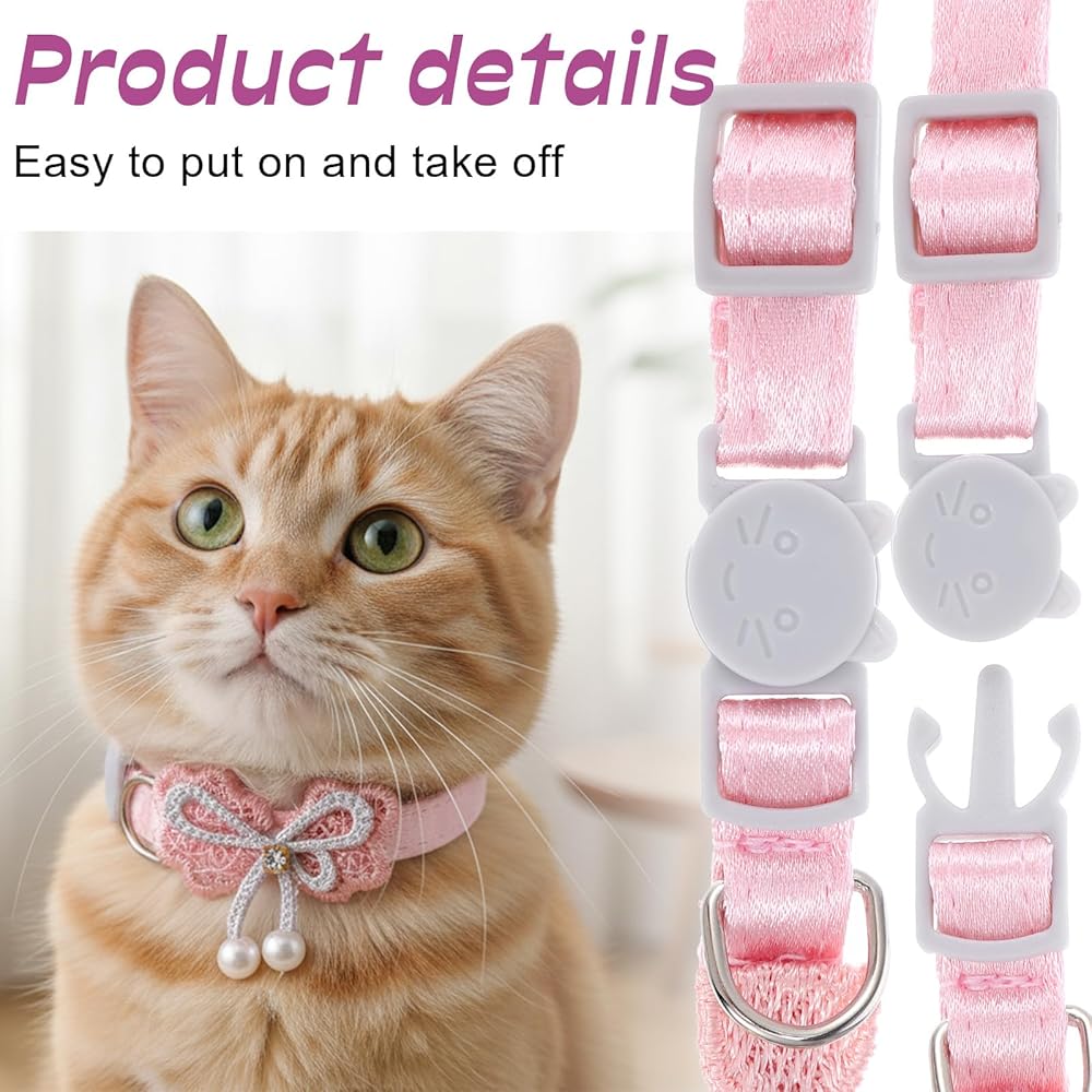 【Safety Design】The breakaway buckle will quickly release under pressure if your cat gets caught up in something. The cat collar breakaway is safe for pets and convenient for you to open. Also, the pink cat collar is tight for everyday wear; girl cat collars won't break from a cat's foot scratching its neck.