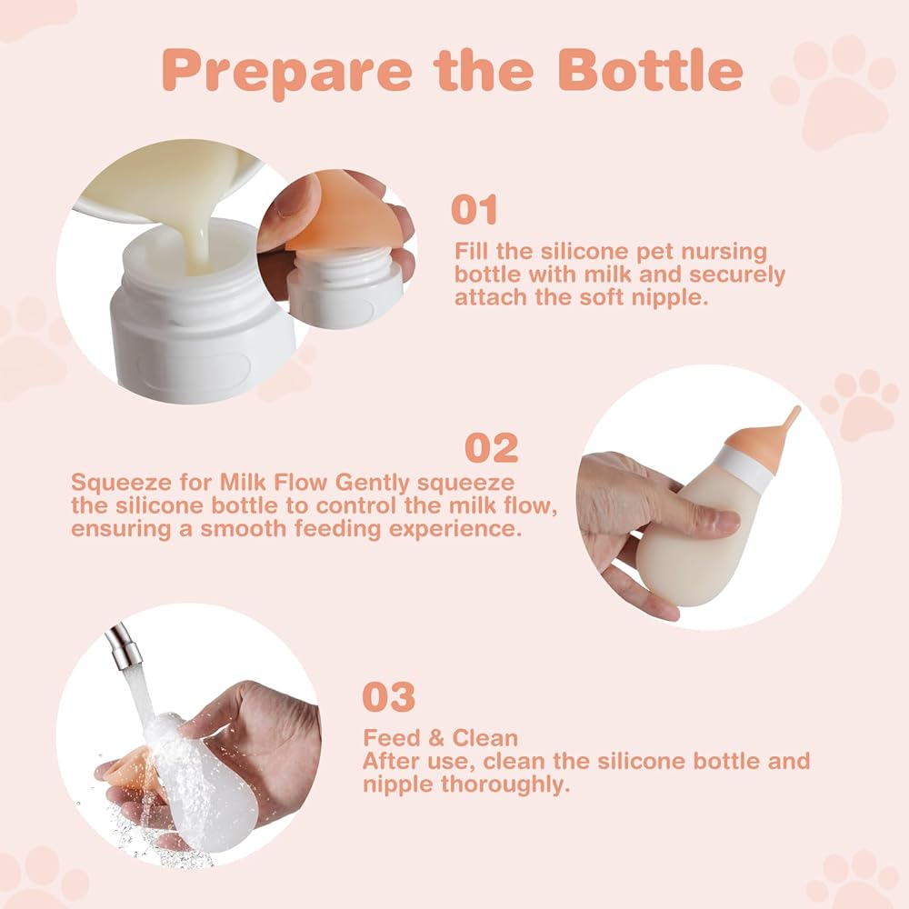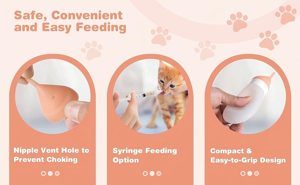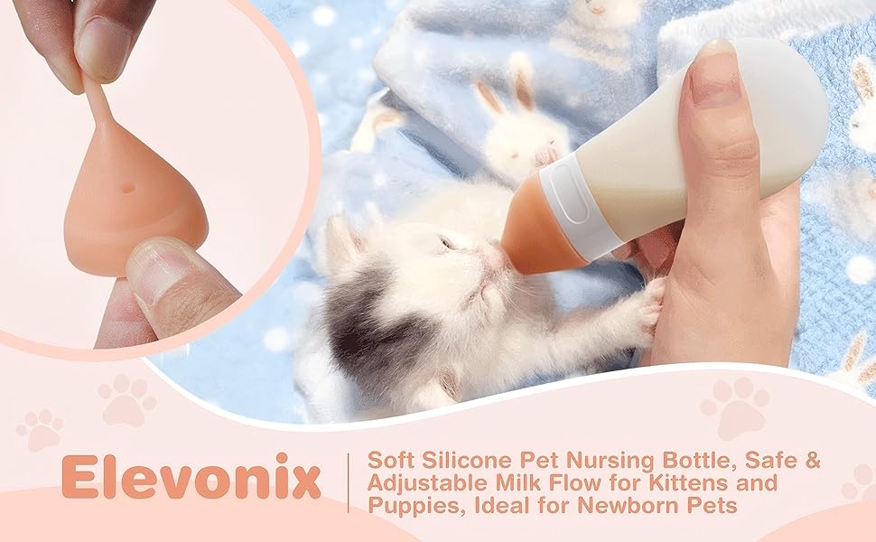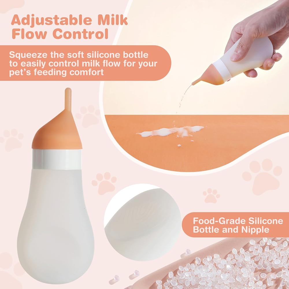 【مادة سيليكون آمنة】زجاجة القطط والحلمة مصنوعة من السيليكون الصالح للطعام، وهي أكثر نعومة وأمانًا من الزجاجات البلاستيكية التي قد تحمل الرائحة. يتيح لك التصميم القابل للعصر التحكم بسهولة في تدفق الحليب، على عكس زجاجات القطط البلاستيكية الصلبة المخصصة لرعاية الحيوانات الأليفة حديثي الولادة والتي يصعب استخدامها.