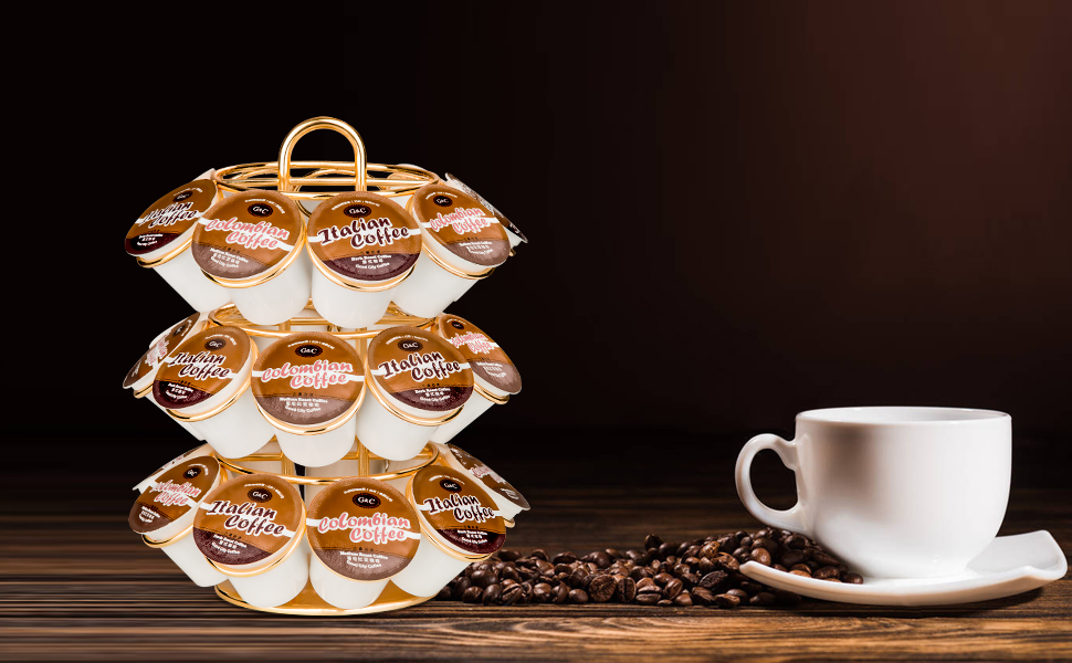 سعة كبيرة تحمل 27 كبسولة - حامل كبسولات القهوة من كريوي متوافق مع كبسولات القهوة على شكل حرف K، ويحمل ما يصل إلى 27 كبسولة قهوة يمكنها عرض وتخزين علب القهوة الخاصة بك بشكل أنيق. ملحق القهوة هذا مناسب للمطبخ والمكتب وبار القهوة.