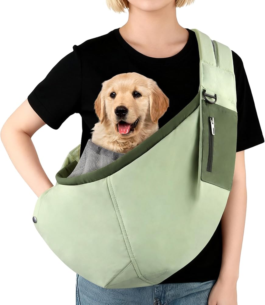 - It also comes with two practical pockets: the large front pocket stores keys, poop bags, pet treats, and even a leash, while the small shoulder pocket holds your phone—keeping your hands free to care for your pet. Suitable for small breeds like Chihuahuas, Yorkies, Bichon Poodles, and Havanese, this dog carrier sling is also great for old, blind, injured, or post-surgery dogs needing trips to the vet.