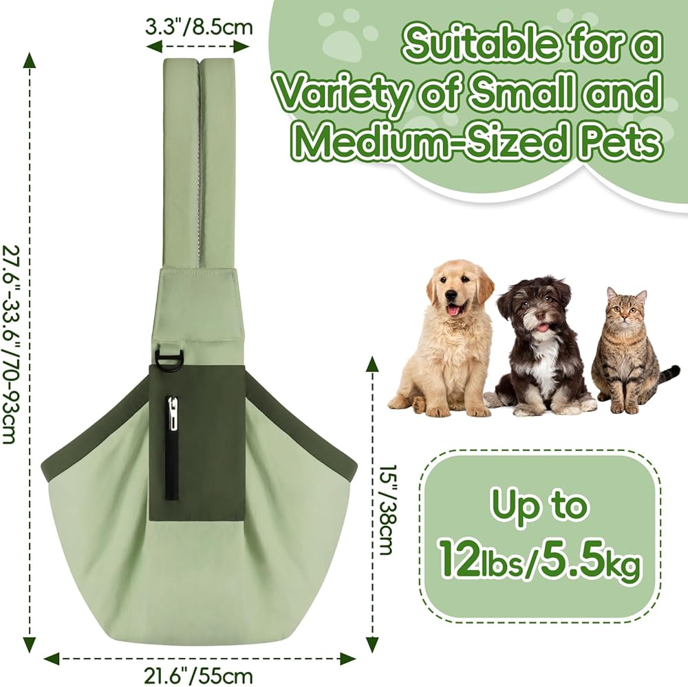 • Perfect Size & Easy Clean: Our dog carrier sling is 21.6x15in (55×38cm) with a 12.6-18.6in (32-55cm) strap, ideal for Dog Sling Carriers for Small Dogs up to 12lbs. This Dog Sling Carriers is machine washable for easy cleaning.