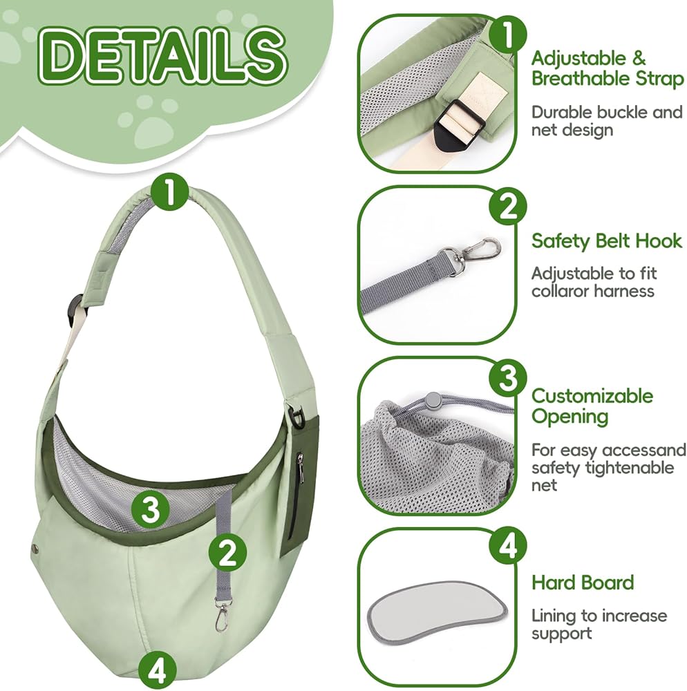 • Premium Quality for Comfort: Our dog carrier sling is made of ultra-soft, breathable cotton and premium fabric—skin-friendly and cozy for your pet. This Dog Sling Carriers keeps pets cool during outings, and as Dog Sling Carriers for Small Dogs, it ensures maximum comfort.