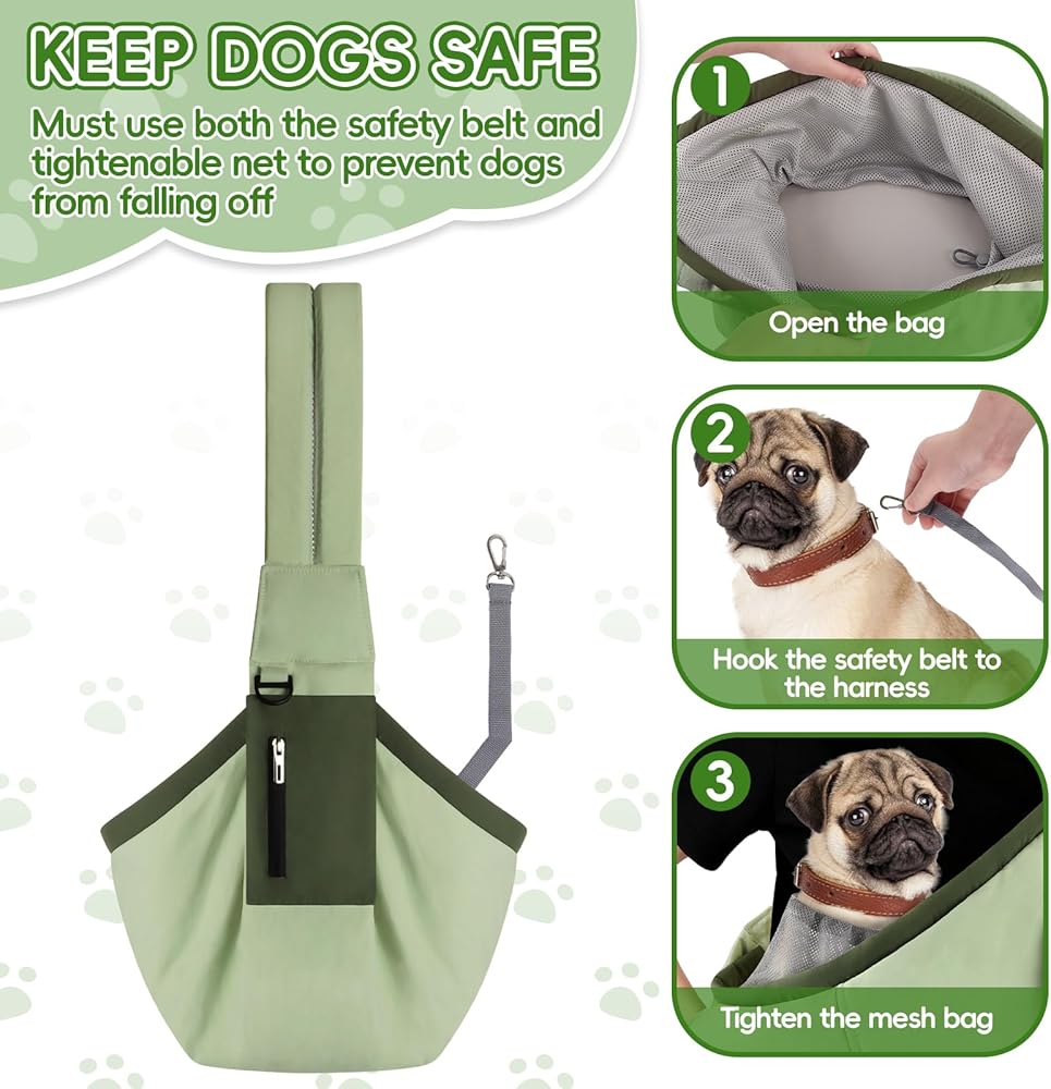 - Safety is a top priority: it has a dual safety design, with a secure belt that fixes to your dog's collar or harness to prevent accidental falls, plus an adjustable mesh opening on this Puppy Carrier Purse to stop curious puppies from jumping out, making our Dog Carriers a worry-free choice.