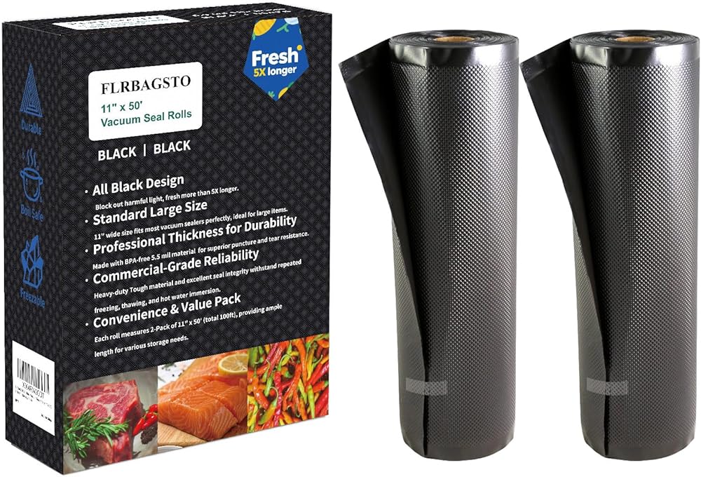 جميع بكرات حفظ الطعام السوداء مقاس 27.94 سم × 127.6 سم، أكياس ختم مفرغة من الهواء سعة 5.5 مل لتخزين الطعام، فيديو Sous Vide، وإعداد الوجبات، درجة تجارية شديدة التحمل (كرتان، إجمالي 100 قدم)