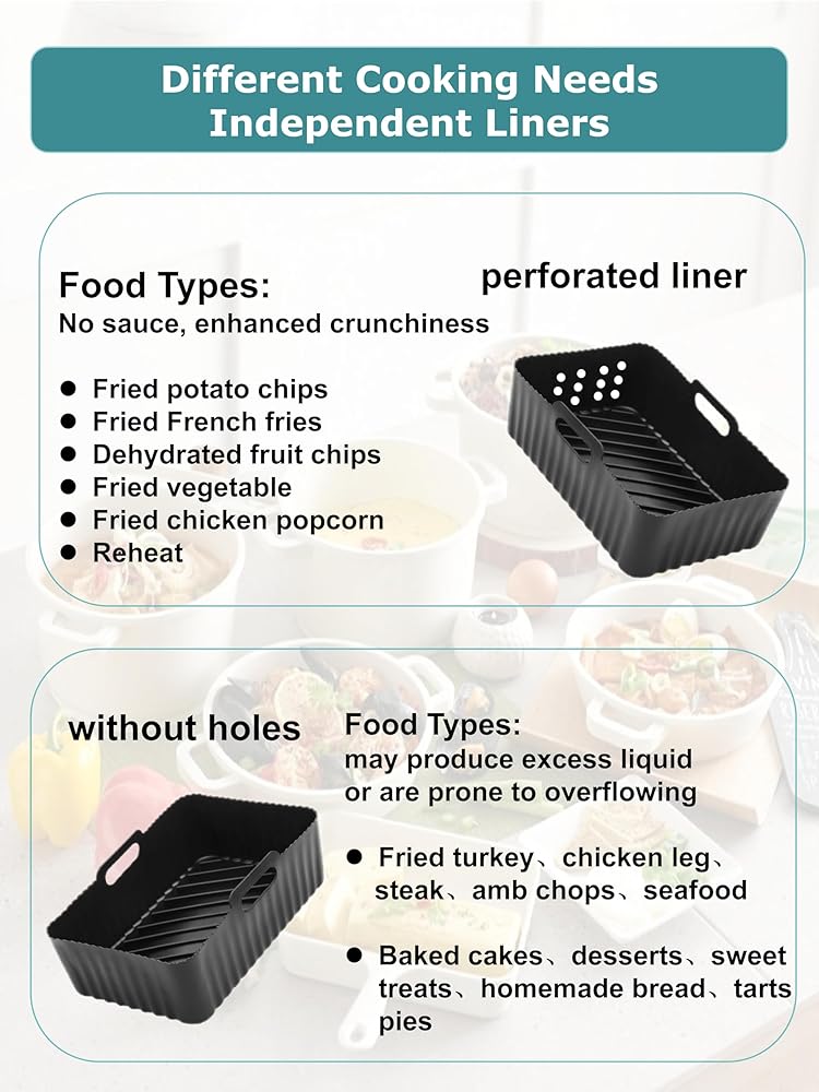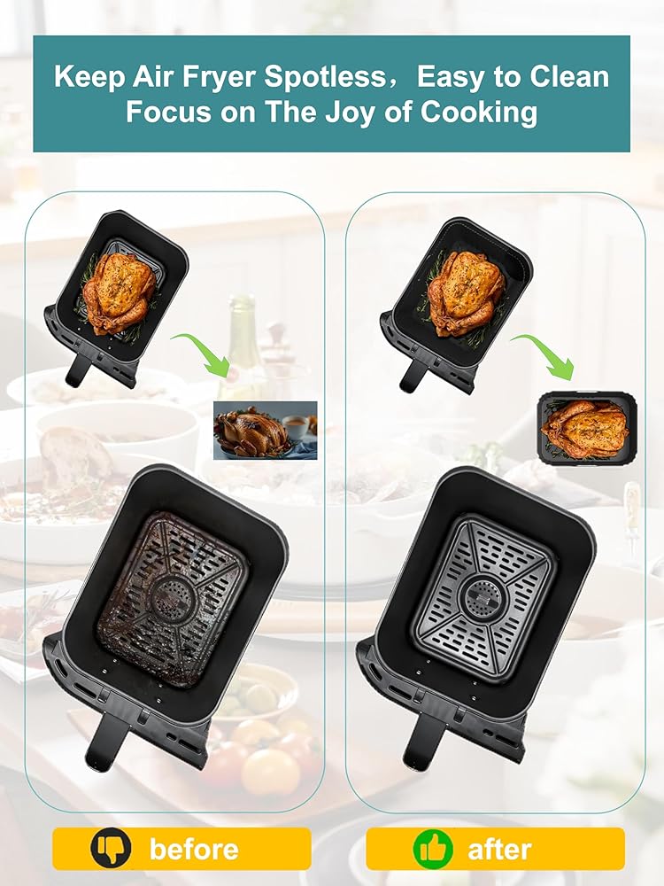قابلة لإعادة الاستخدام وسهلة التنظيف - مصنوعة من السيليكون عالي الجودة غير اللاصق. ما عليك سوى وضعها في غسالة الأطباق أو شطفها بالماء الدافئ بعد الاستخدام. قل وداعًا للدهون العنيدة وبقايا الطعام.