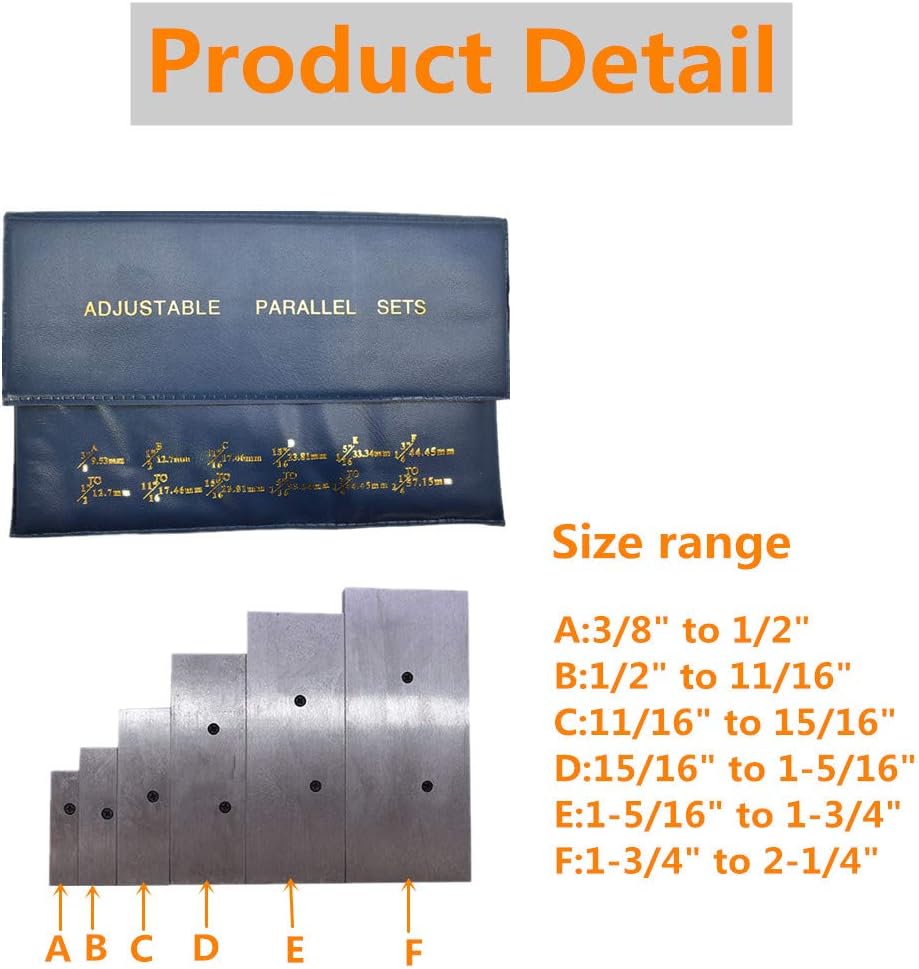 نطاق الطول - من 1-3/4 بوصة إلى 5 بوصة مغلق؛ السُمك: 7 ملم +/- 0.2 ملم.