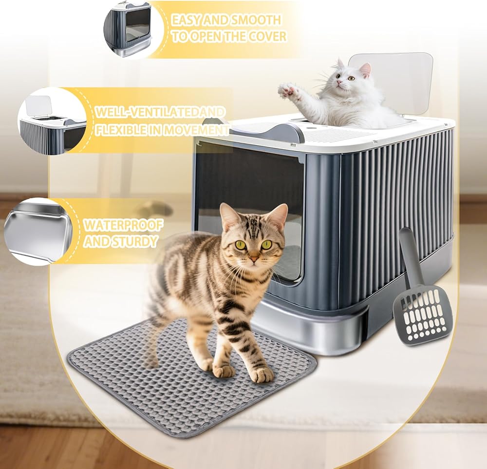 【هيكل متين وآمن للحيوانات الأليفة】 - مصنوع من بلاستيك عالي الجودة ومقاوم للبقع وحصيرة آمنة من البولي فينيل كلوريد، صندوق الفضلات هذا لطيف على أقدام قطتك ويسهل الحفاظ عليه من أجل بيئة معيشة صحية.