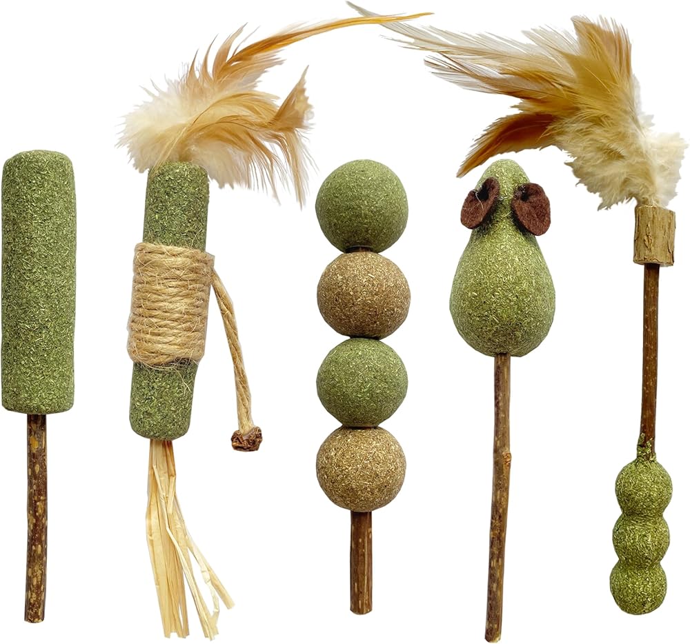لعبة القطط التفاعلية للقطط من النعناع البري وسيلفرفين، ألعاب قطط وعصي فضية طبيعية للقطط، ألعاب شفاء تفاعلية داخلية للقطط الأليفة (5 عبوات)