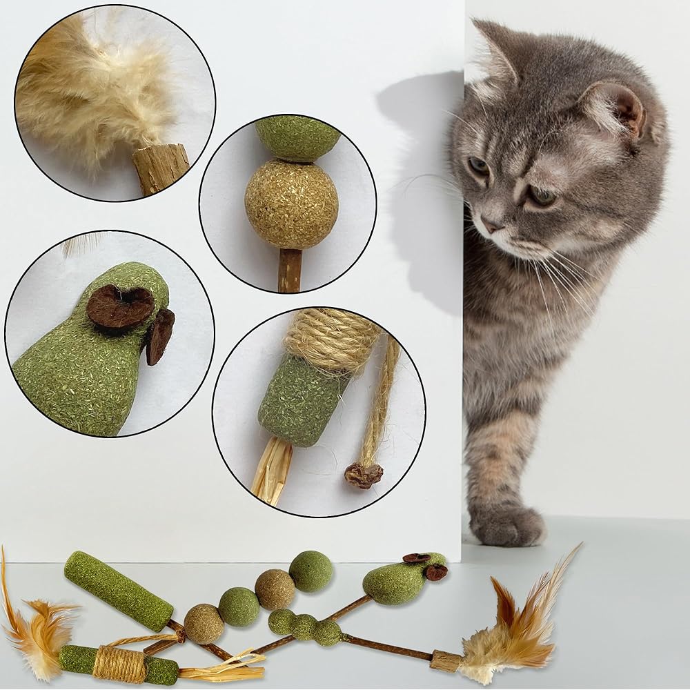 • 【 Natural 】🌿 Made from carefully selected high-quality natural catnip and organic silver vine, polygonum is a chewable safe wood that promotes digestion, increases your cat's appetite, and supports overall health. Provide cats with a natural and healthy way to release energy and engage their senses.