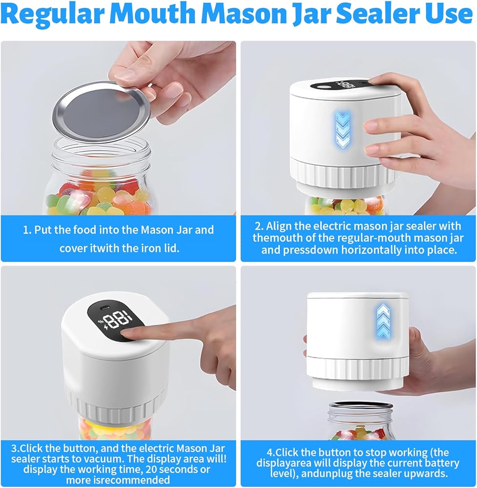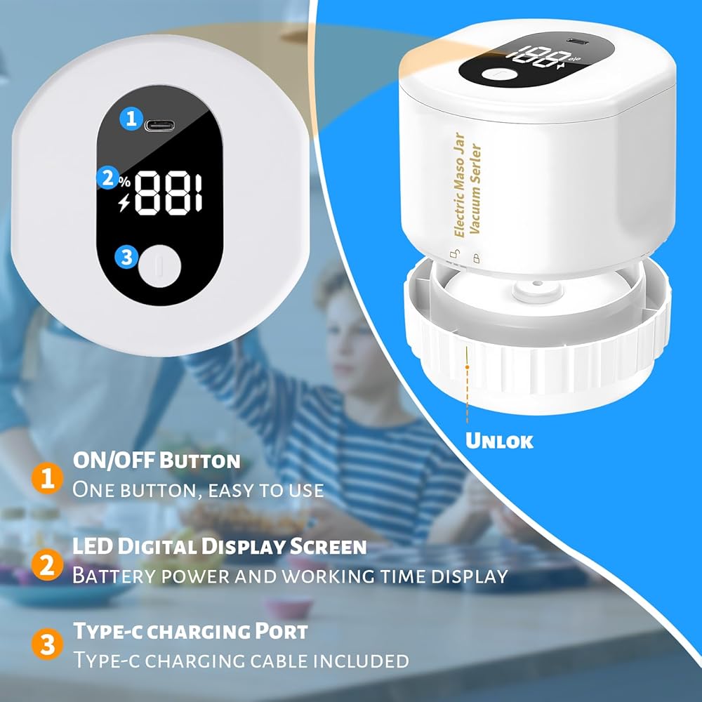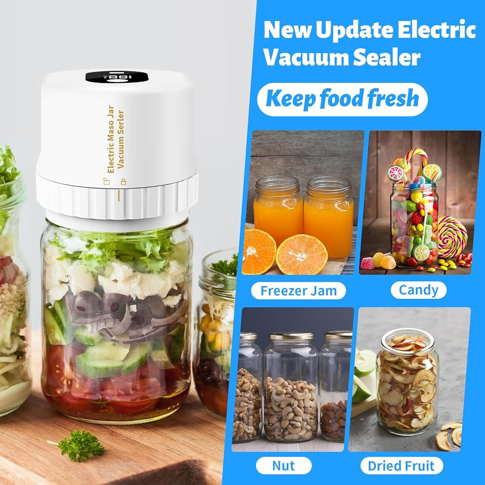 Complete Vacuum Sealing Solution:Includes electric vacuum pump, wide mouth sealer, standard mouth converter, and multiple lids, extending food freshness