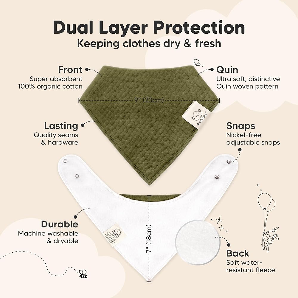 • 8 قطع من صدريات Baby Girl Bandana - صدريات KeaBabies العضوية التي تسيل اللعاب تأتي بظلال محايدة للجنسين لتتناسب بسهولة مع ملابس طفلك اليومية. تضمن مرايل الأطفال القطنية الناعمة والمسامية والماصة بقاء طفلك باردًا أثناء سيلان اللعاب والتسنين.