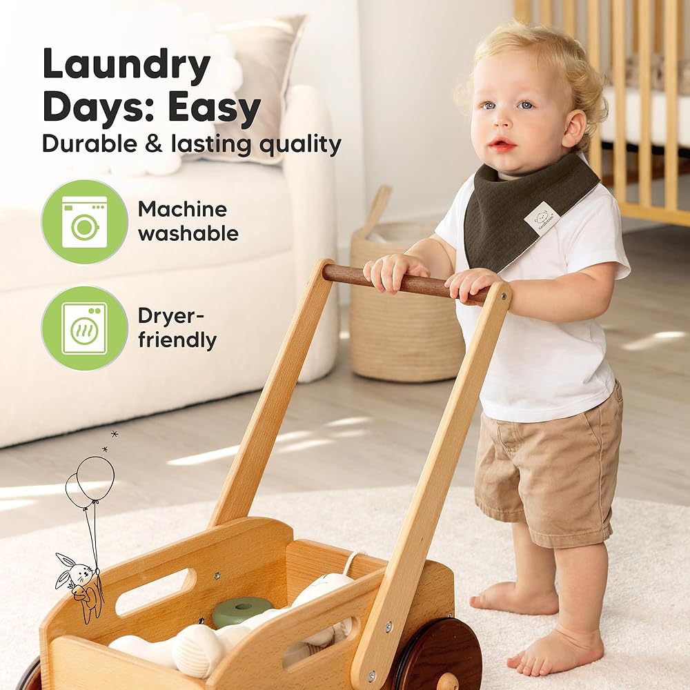 • صدريات فائقة الامتصاص - تتميز صدريات المنديل الخاصة بنا للفتيات الصغيرات بطبقة مزدوجة من القطن العضوي GOTS لامتصاص مثالي ومدعومة بصوف البوليستر الناعم لمزيد من الحماية. سهل التنظيف، مثالي للاستخدام اليومي. يُغسل في الغسالة ويُجفف بالمجفف على درجة منخفضة.